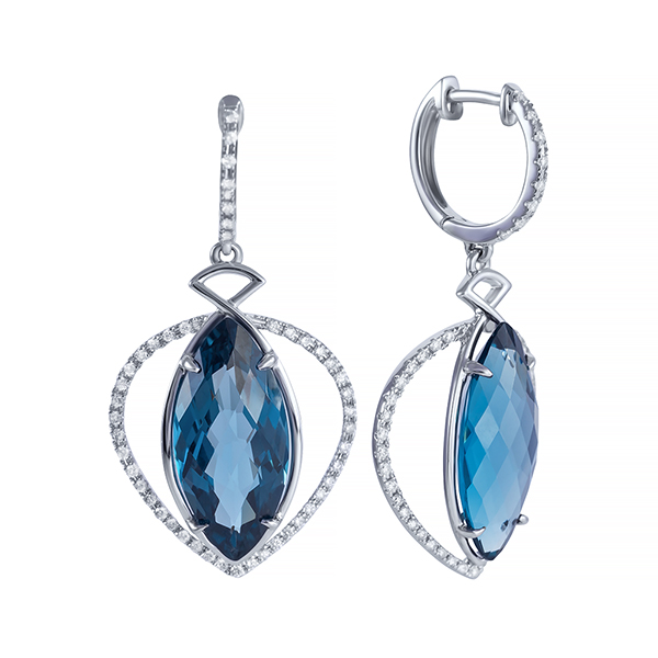 Серьги с топазами и бриллиантами из белого золота 585 пробы арт. ER-32292