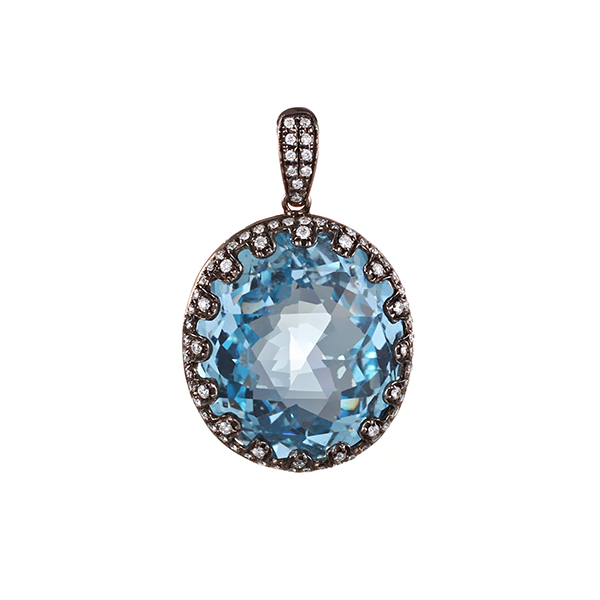 Подвеска с топазом и бриллиантами из черного золота 585 пробы арт. HF03334P-W-BT