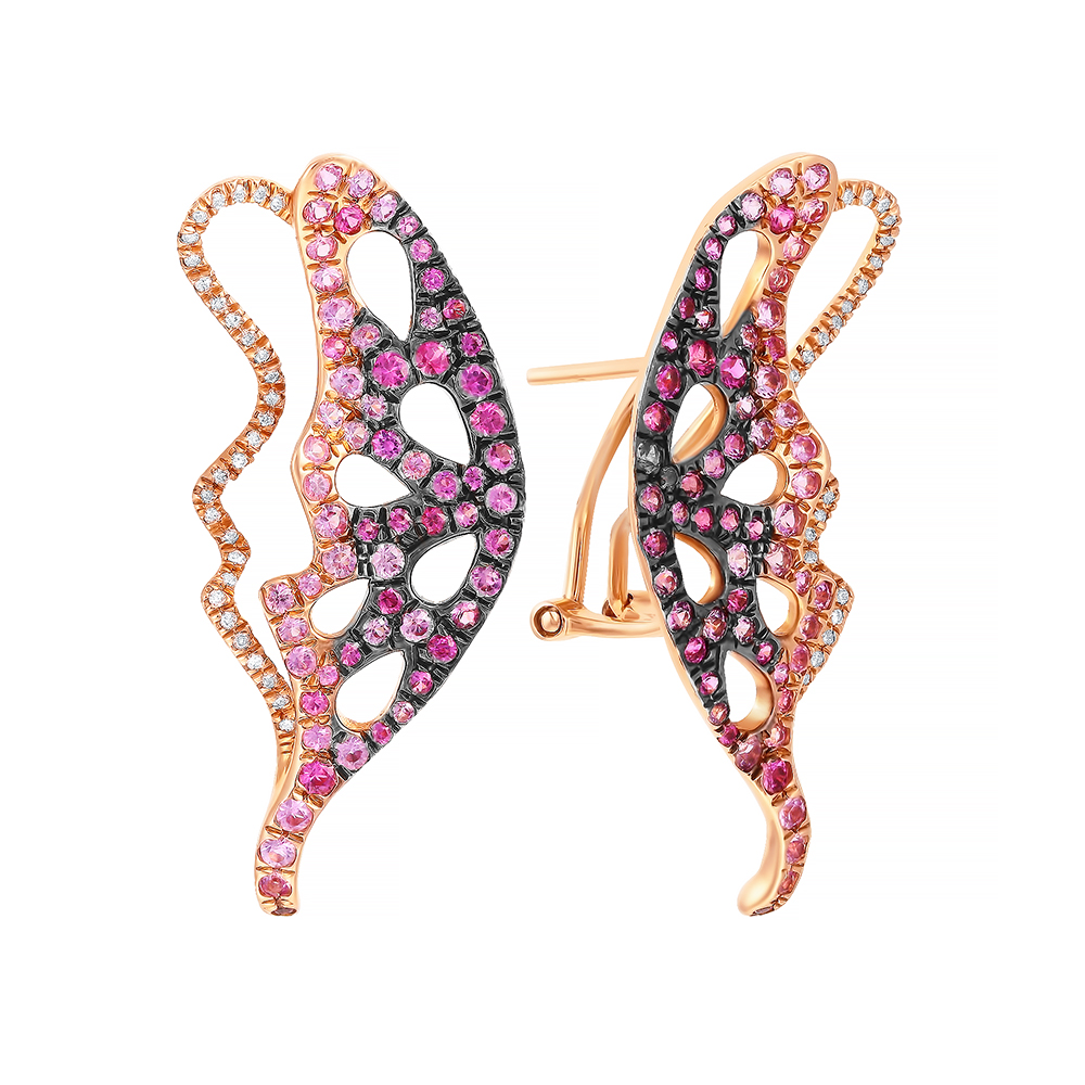 Серьги "Бабочки" с бриллиантами и сапфирами из розового золота 585 пробы арт. HF05218E-R-PS