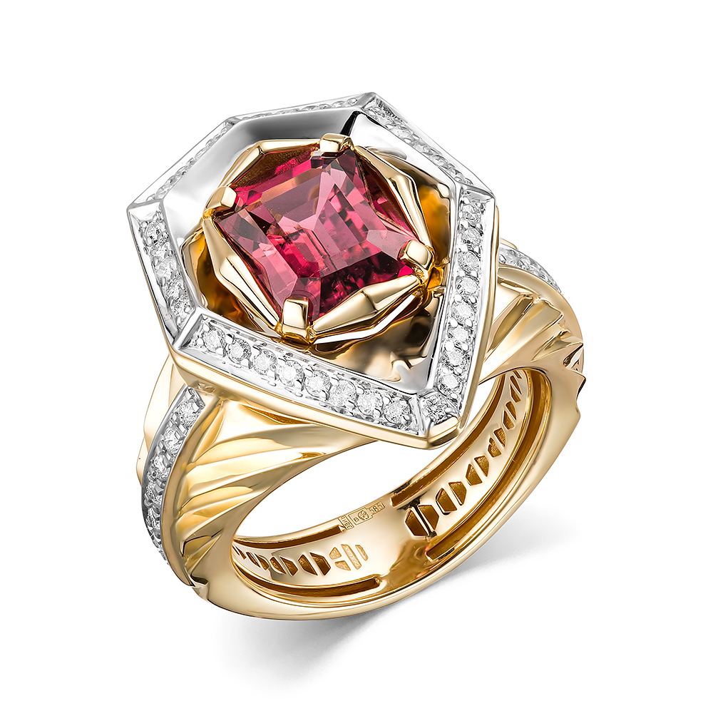 Кольцо с турмалином и бриллиантами из желтого золота 585 пробы арт. К/699-301/3