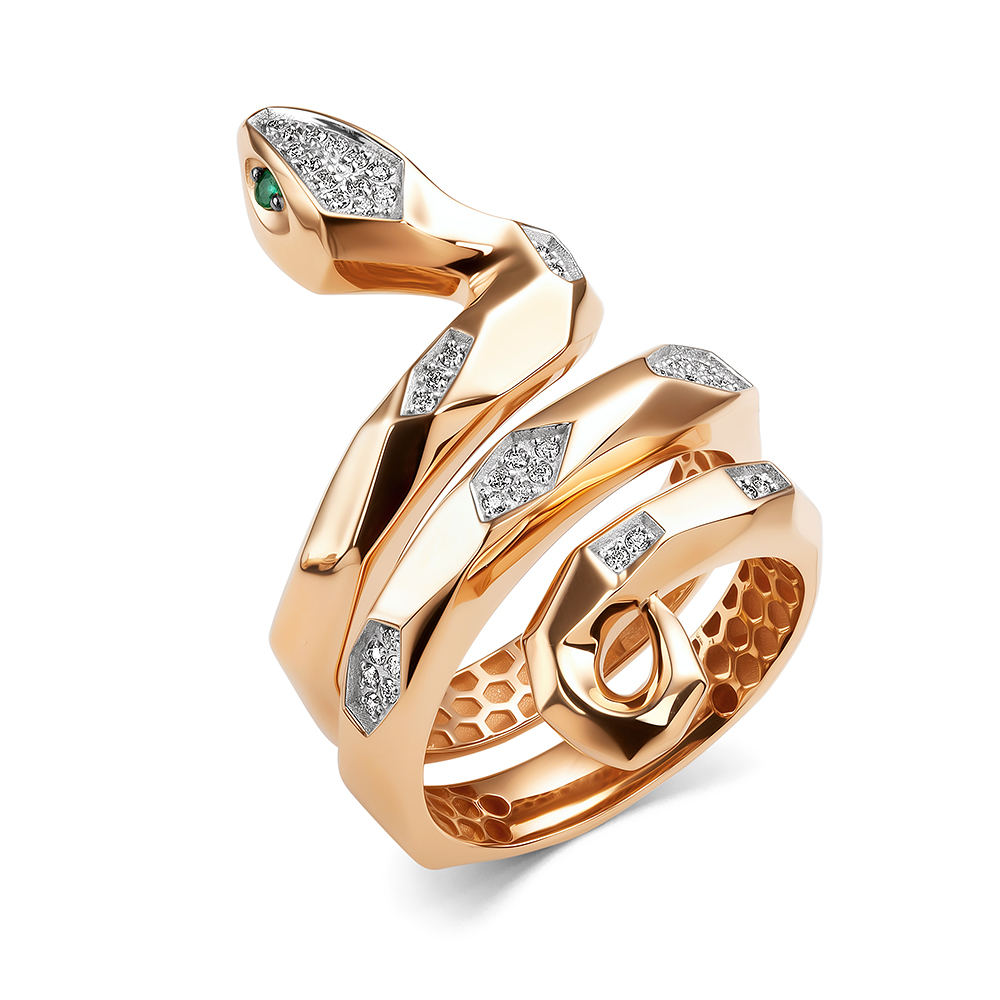 Кольцо "Змея" с бриллиантами и изумрудами из золота 585 пробы арт. К/969-123