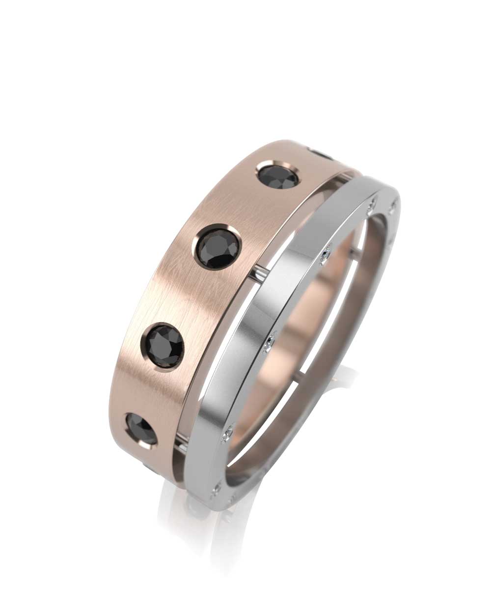 Кольцо обручальное с бриллиантами из золота 585 пробы арт. КРТ-10-36чбр/бк