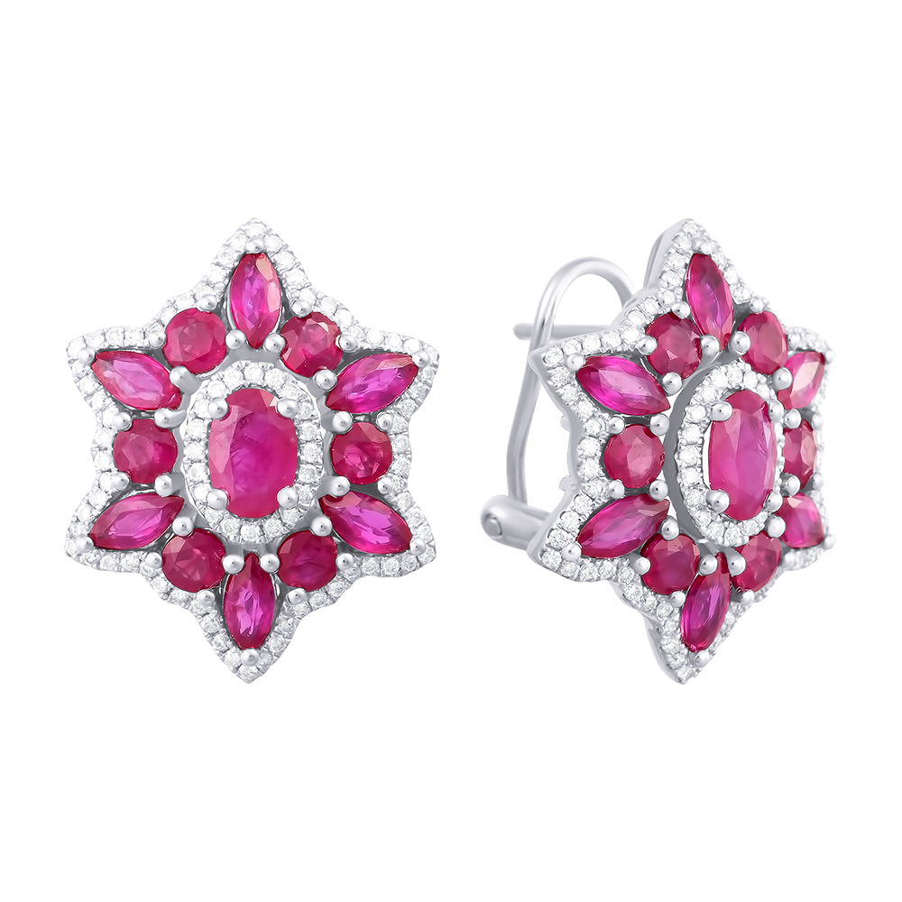 Серьги с рубинами и бриллиантами из белого золота 585 пробы арт. ME34179-WD-RU