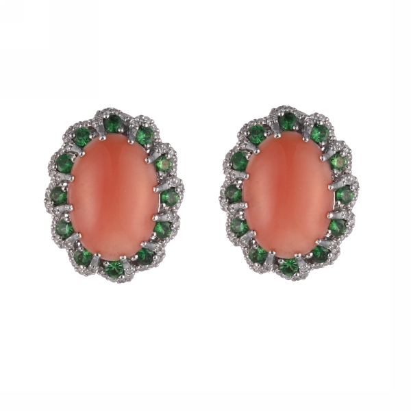 Серьги с кораллом, цаворитом и бриллианттами из белого золота 750 пробы арт. MJ-2340E_WGDWTVCOR