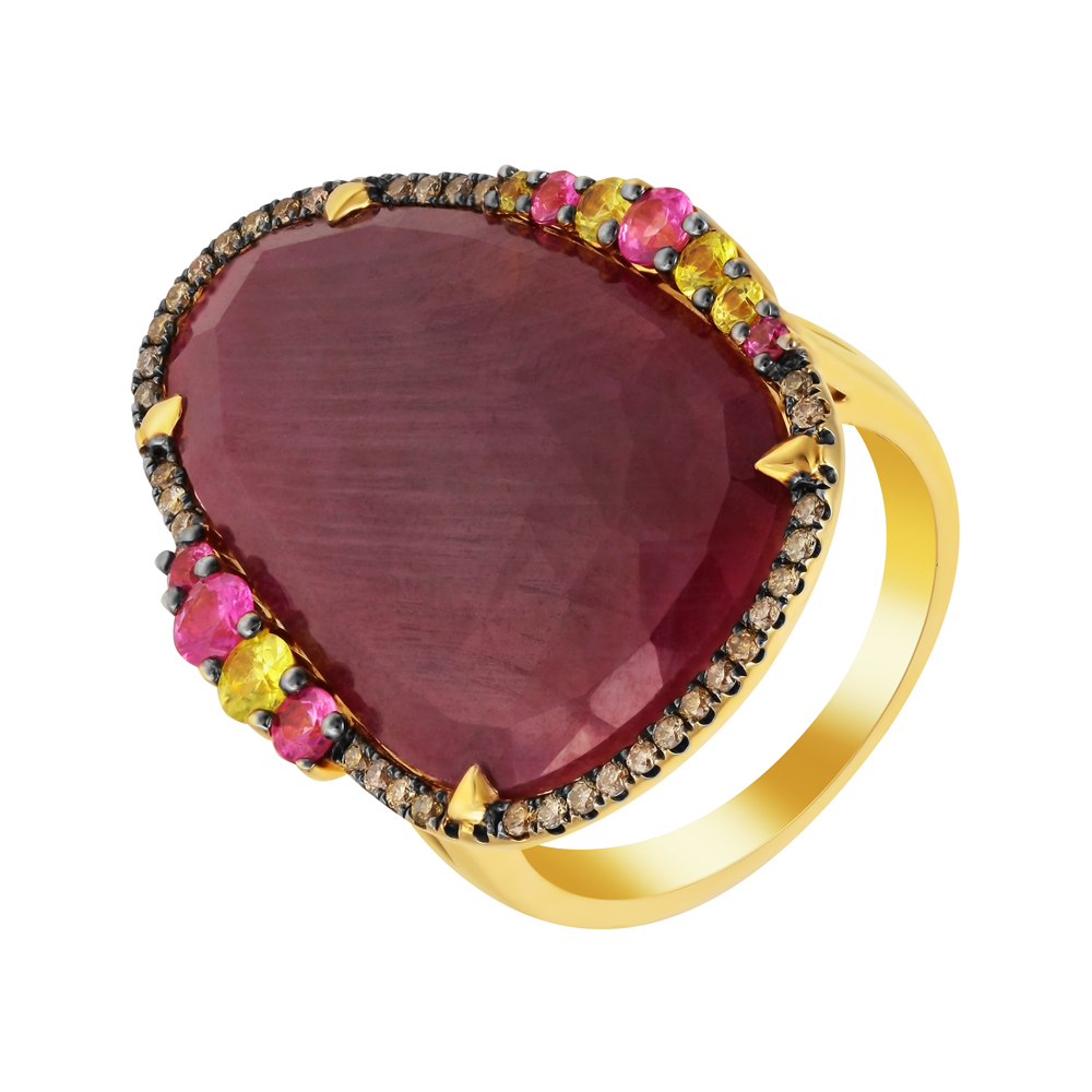 Кольцо с бриллиантами, сапфирами и корундом из желтого золота 585 пробы арт. MR83824-BR-PS-YS-YG