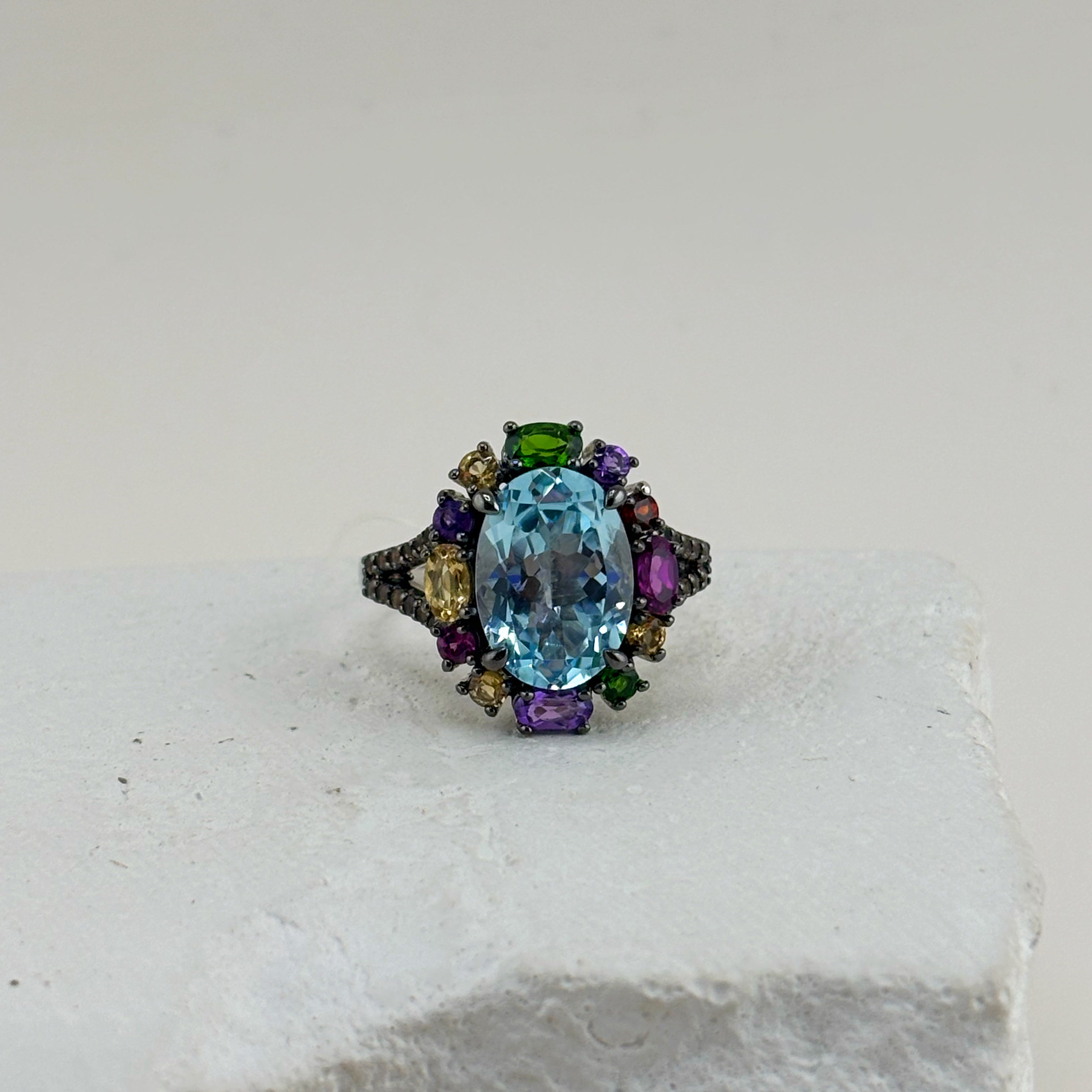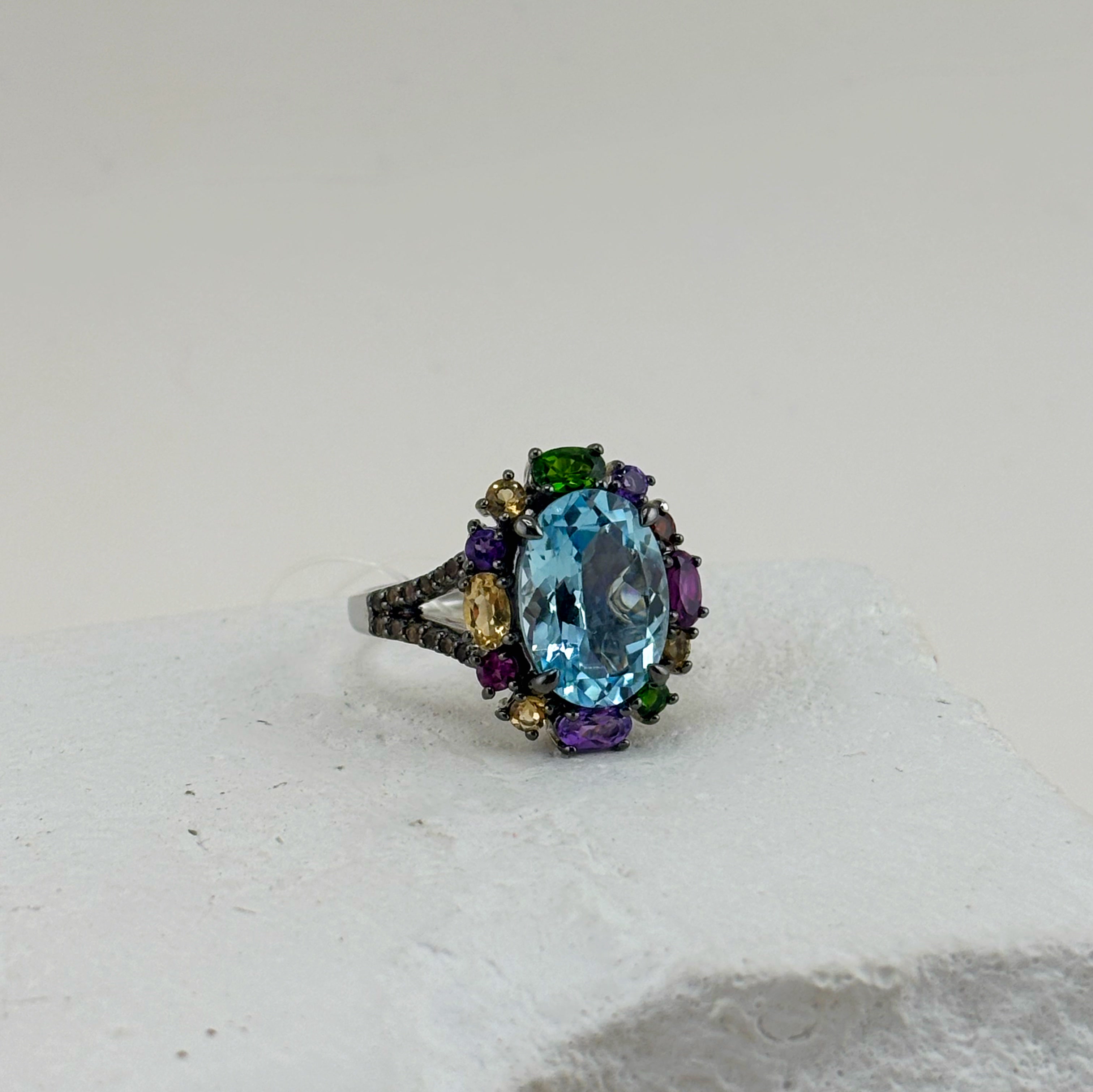 Кольцо с топазом, аметистом, родолитом, цитрином, хромдиопсидом, гранатом и кварцем из серебра 925 пробы арт. R-03275-88-S07_KO_AM_BT_C