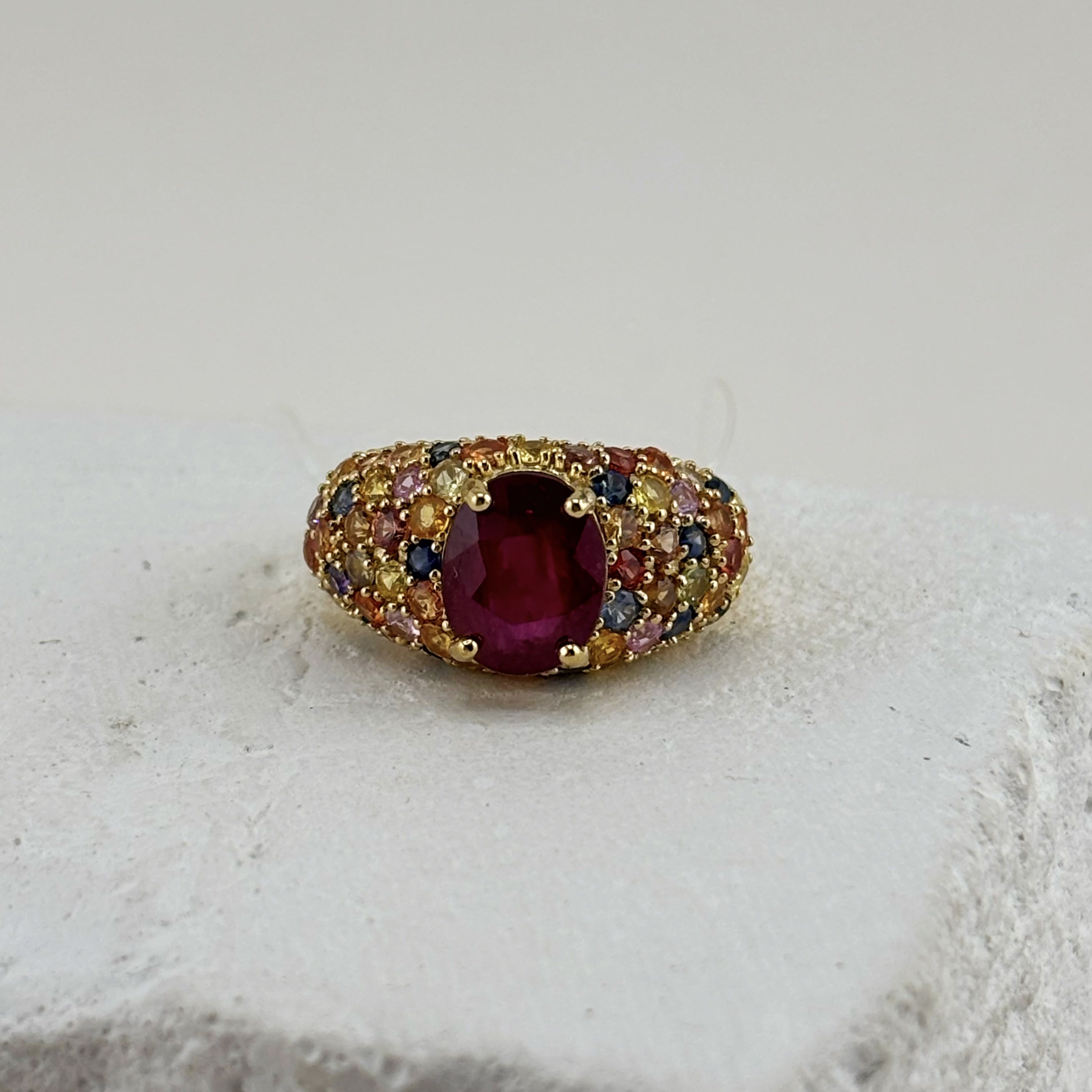 Кольцо с корундом и сапфирами из серебра 925 пробы с позолотой арт. R-03876-47-S01_KO_SM_CR_Y