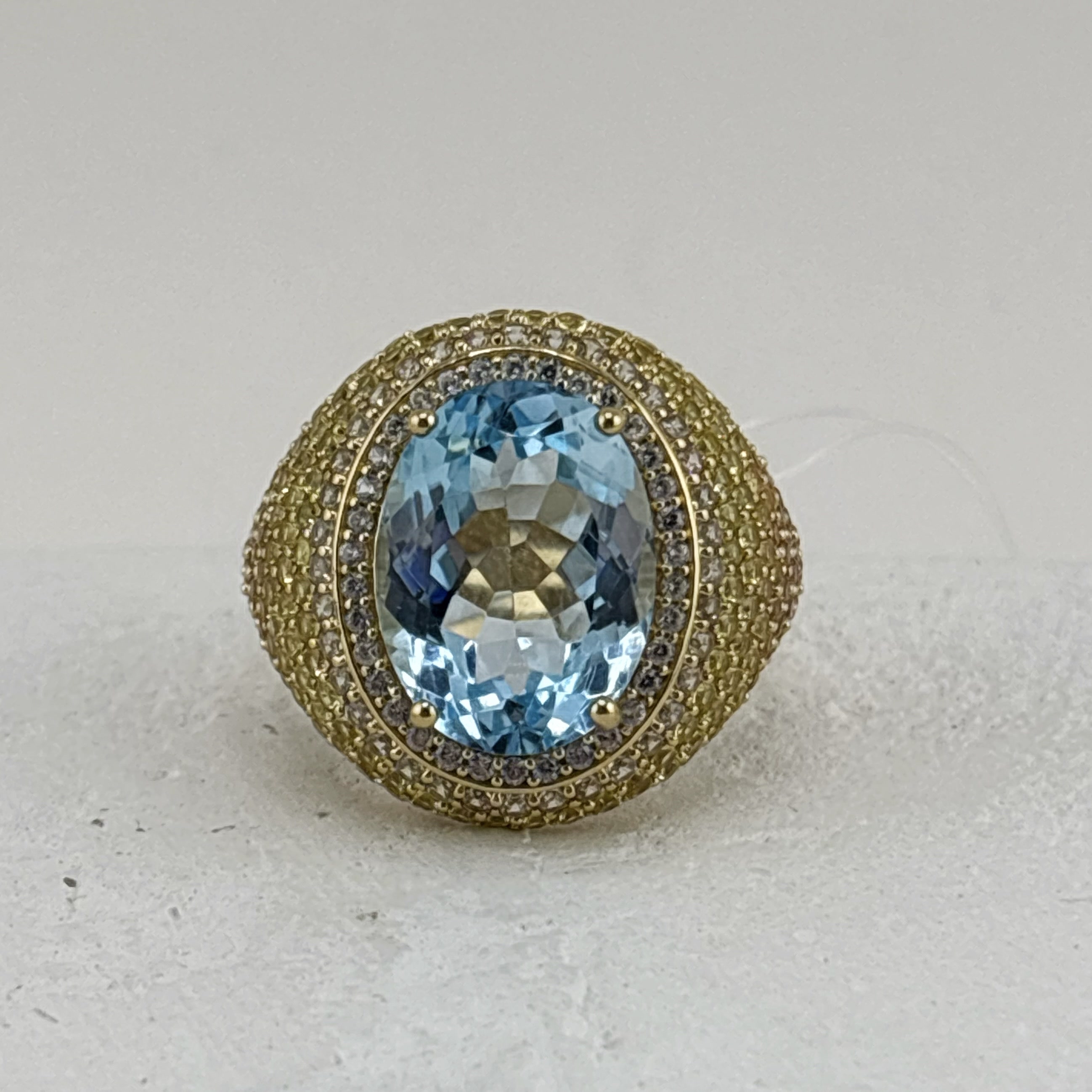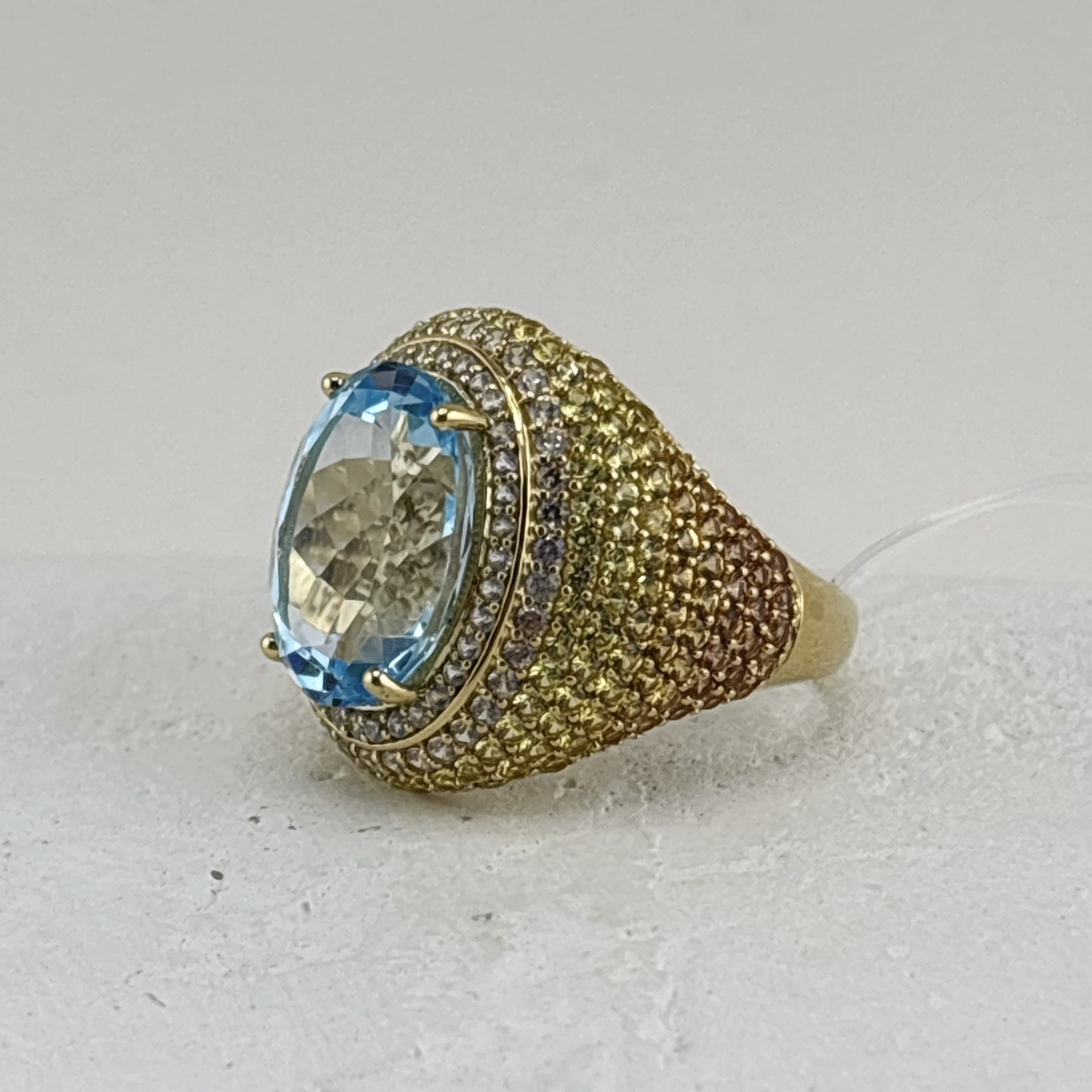 Кольцо с топазом, сапфирами и цирконом из серебра 925 пробы с позолотой арт. R-03905-88-S05_KO_YS_BT_Y