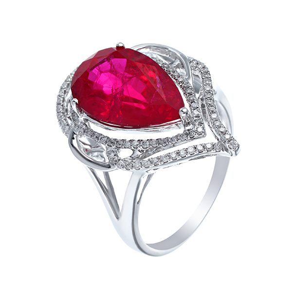 Кольцо с рубином и бриллиантами из белого золота 585 пробы арт. R01711AR4WT