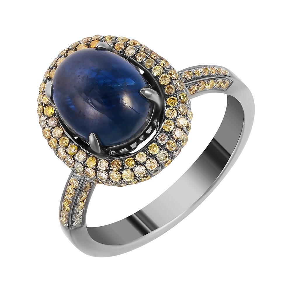 Кольцо с сапфиром и бриллиантами из черного золота 750 пробы арт. R1056SP-YH01-2060