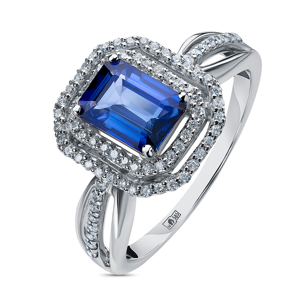 Кольцо с сапфиром и бриллиантами из белого золота 585 пробы арт. R1409-1011