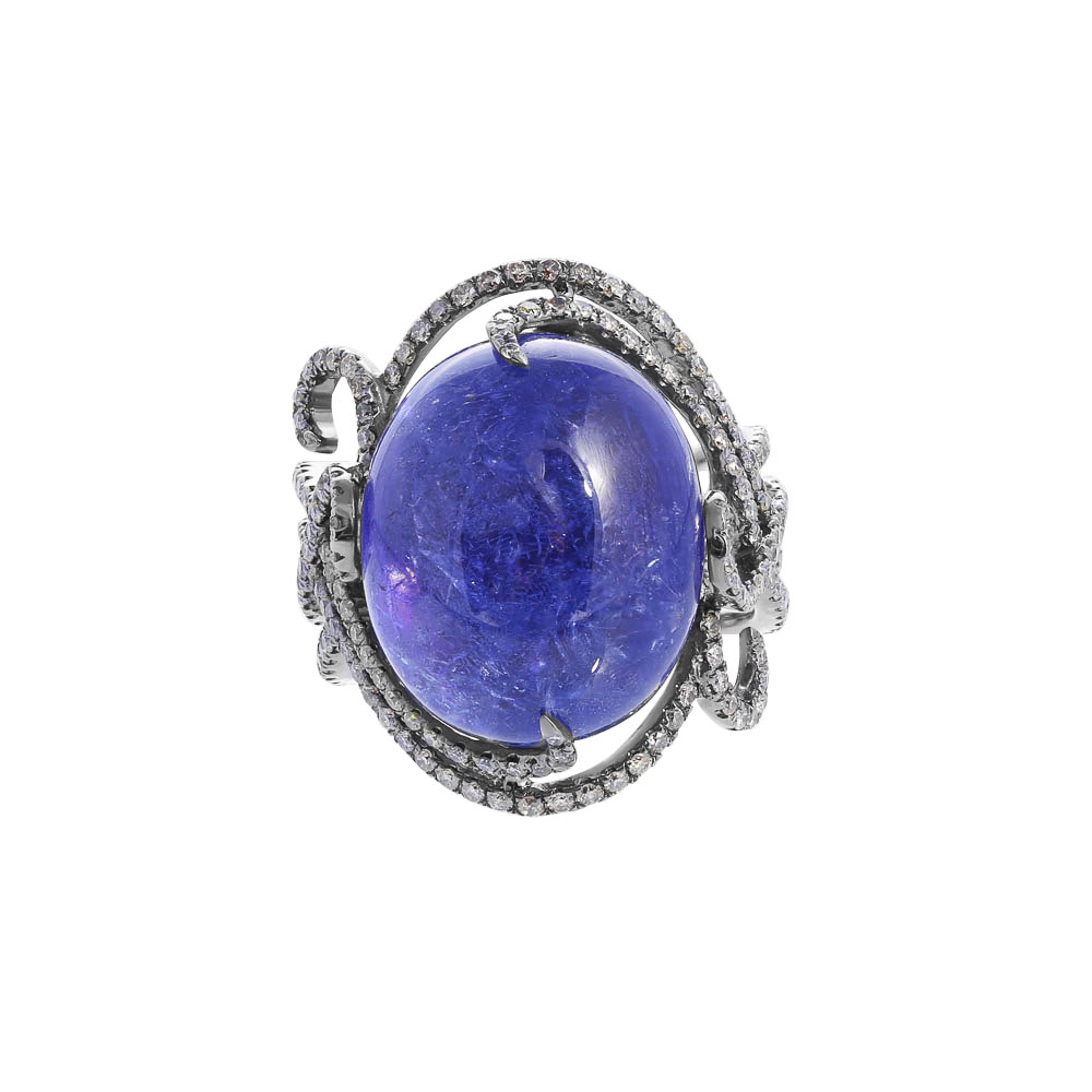 Кольцо с танзанитами и бриллиантами из черного золота 750 пробы арт. R2050LAP