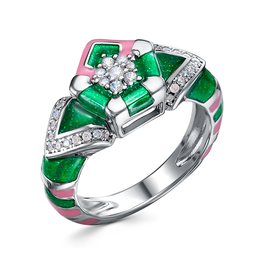 Кольцо "Цветок" с эмалью и фианитами из серебра 925 пробы арт. R40578_KO_ENAM_WG