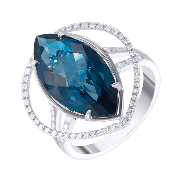 Кольцо с топазом и бриллиантами из белого золота 585 пробы арт. RG-32292