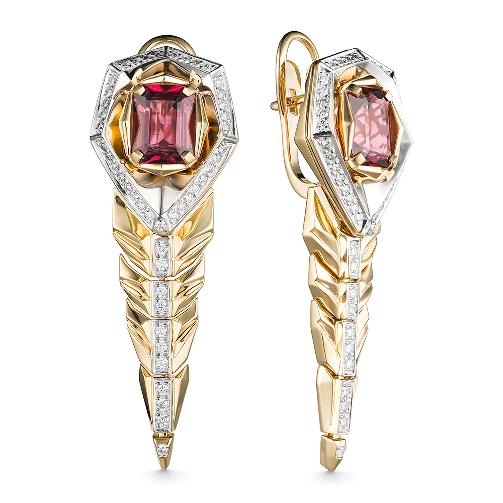 Серьги с турмалинами и бриллиантами из золота 585 пробы арт. С/699-301/3