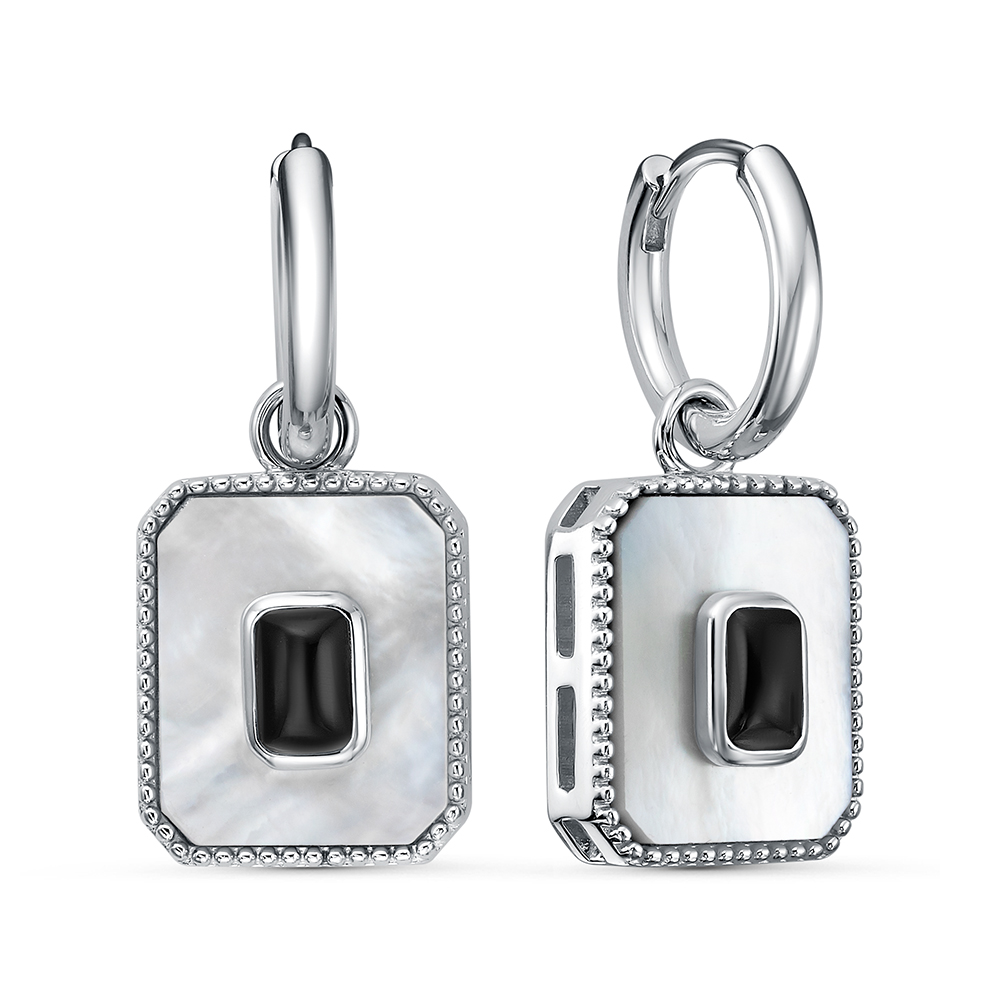 Серьги с перламутром и ониксом из серебра 925 пробы арт. SE41737-BY_SR_OX_SH_WG