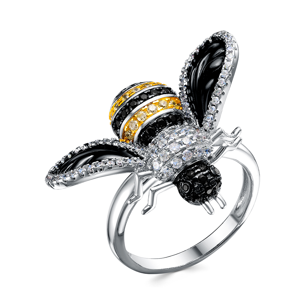 Кольцо "Пчела" с фианитами и эмалью из серебра 925 пробы арт. SR31222-BW_KO_ENAM_WG