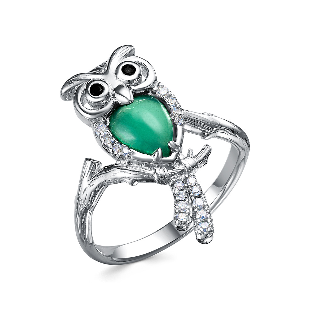 Кольцо "Сова" с агатом и фианитами из серебра 925 пробы арт. SR31975-BH_KO_ZAG_WG