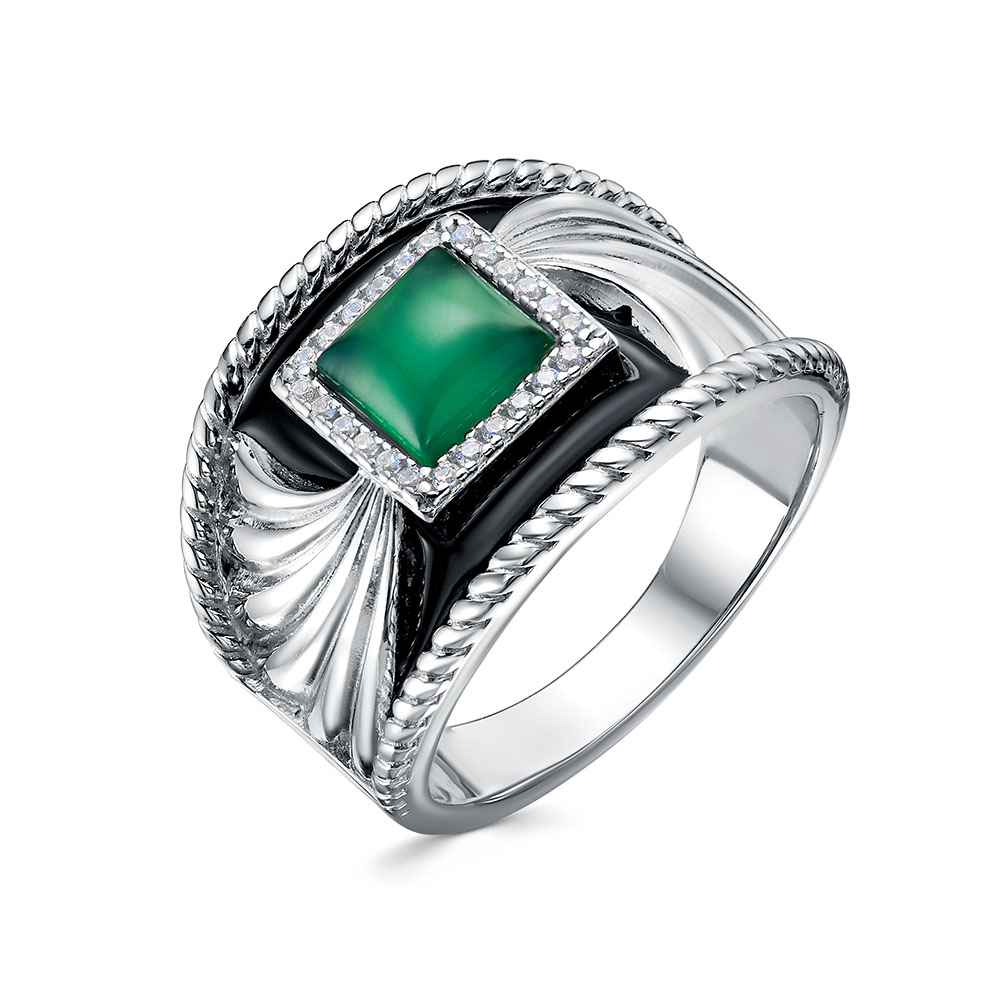 Кольцо с агатом, фианитами и эмалью из серебра 925 пробы арт. SR41896-BW_KO_ZAG_ENAM_WG