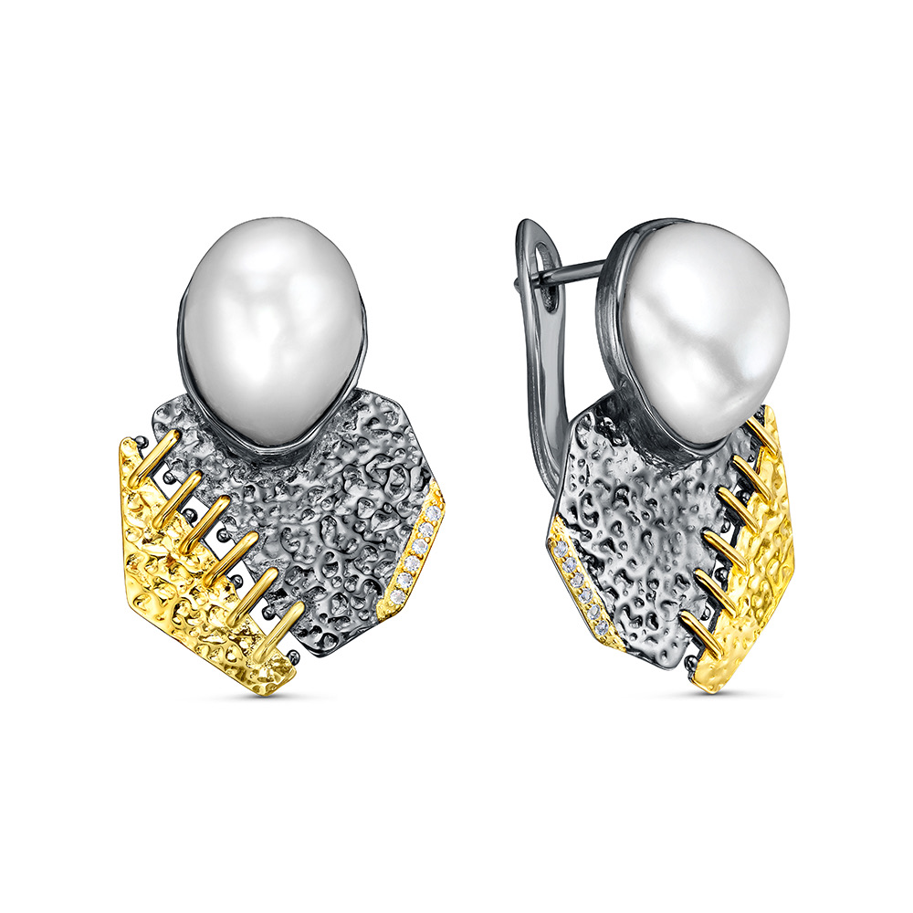 Серьги с барочным жемчугом и топазами из серебра 925 пробы с позолотой арт. YE02357_SR_WB_BJ