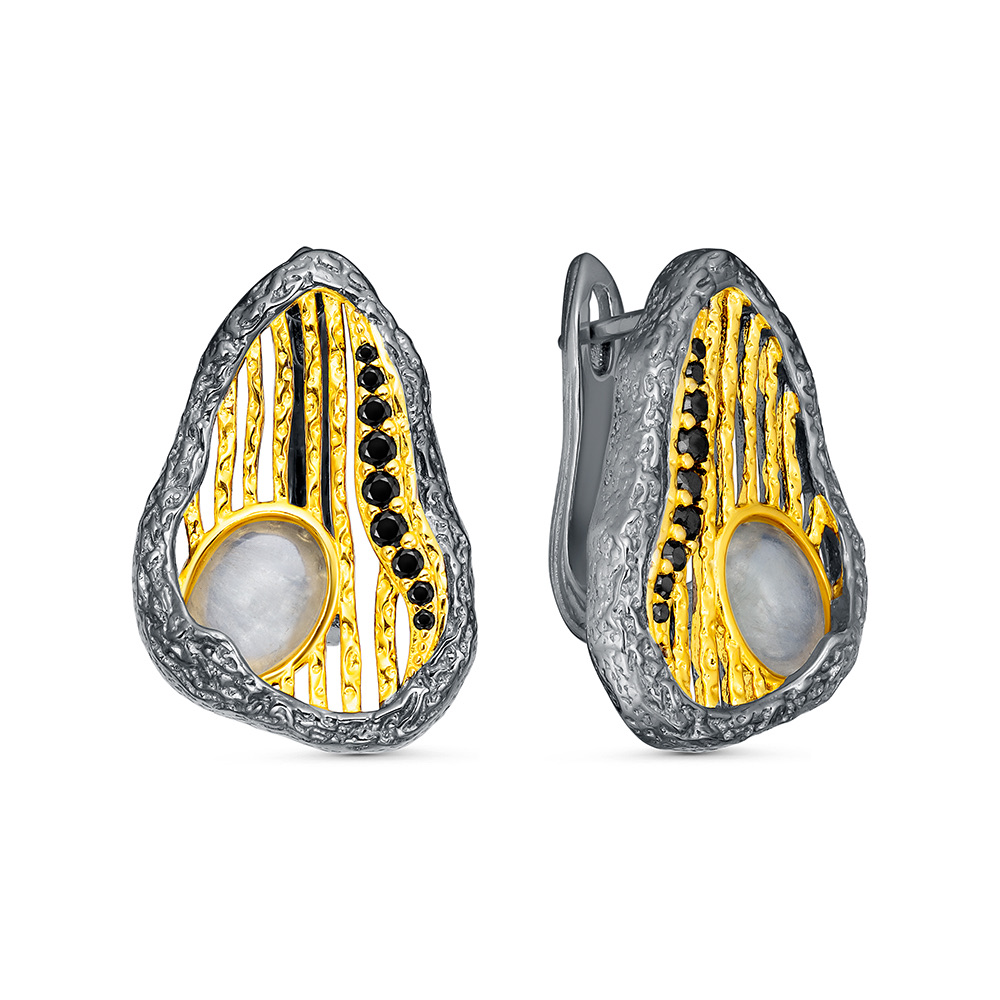 Серьги с пренитом и шпинелью из серебра 925 пробы с позолотой арт. YE02880_SR_PH_SP_BJ