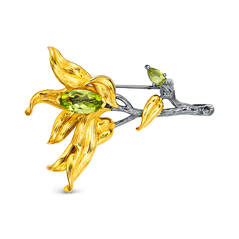 Брошь-Подвеска "Цветок" с перидотом из серебра 925 пробы с позолотой арт. YP02484_BRP_PD_BJ