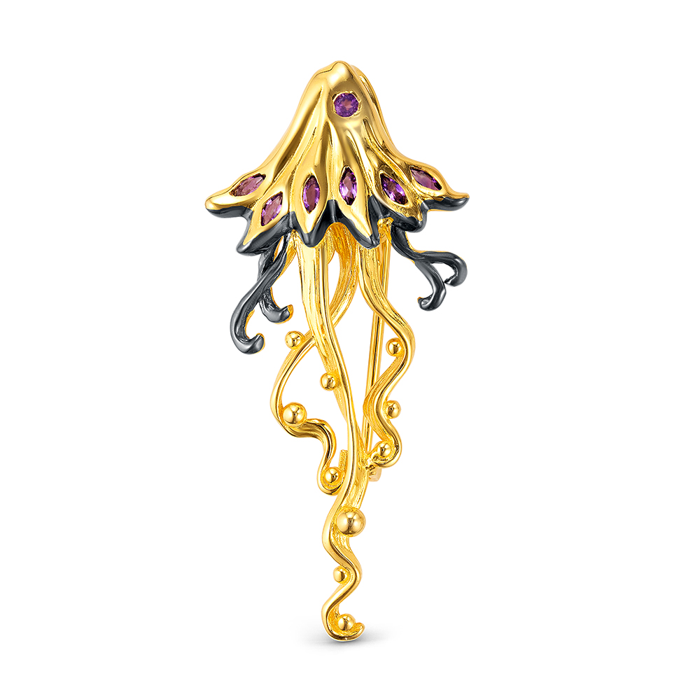 Брошь с аметистами из серебра 925 пробы с позолотой арт. YP02638_BRP_AM_BJ