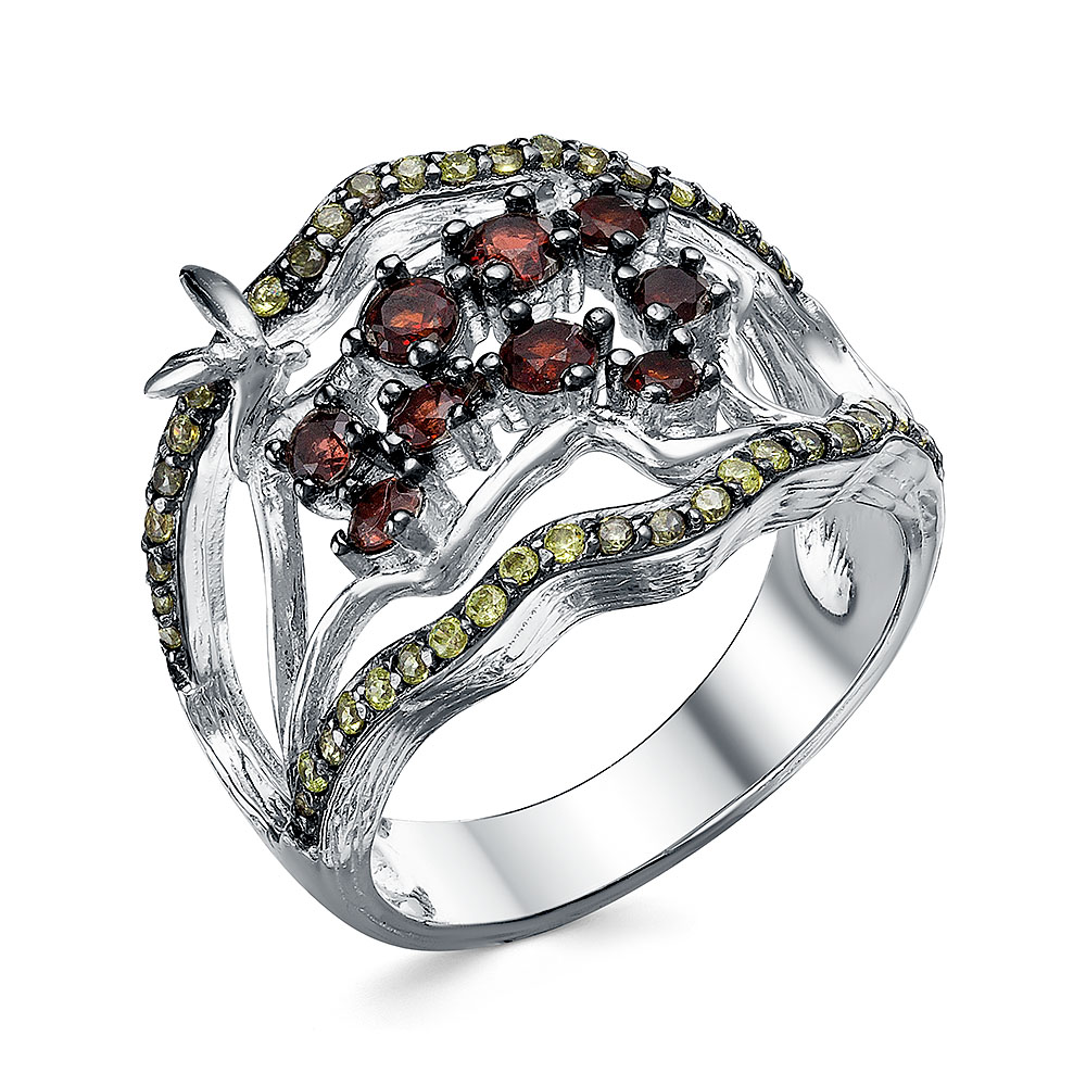 Кольцо с гранатами и фианитами из серебра 925 пробы арт. YR01120_KO_GR_WG