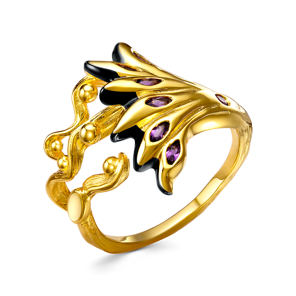 Кольцо с аметистами из серебра 925 пробы с позолотой арт. YR02638_KO_AM_BJ