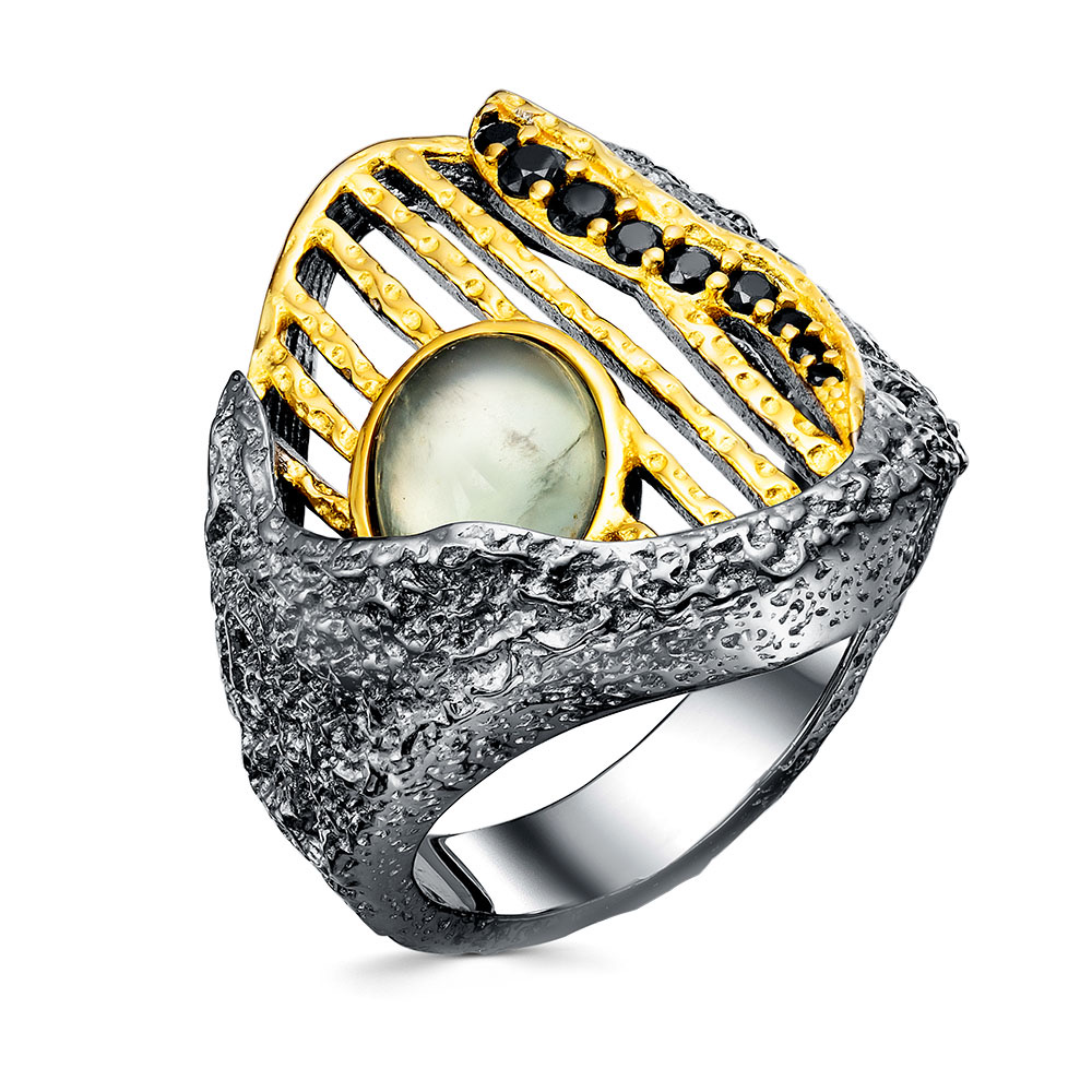 Кольцо с пренитом и шпинелью из серебра 925 пробы с позолотой арт. YR02880_KO_PH_SP_BJ