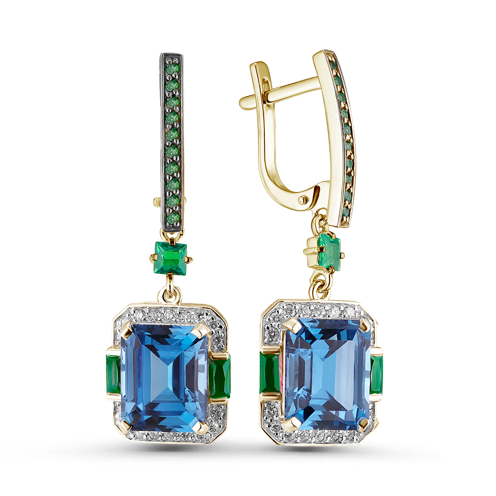 Серьги с бриллиантами, шпинелью и агатом из золота 585 пробы арт. 02-02071-05-200-01-02