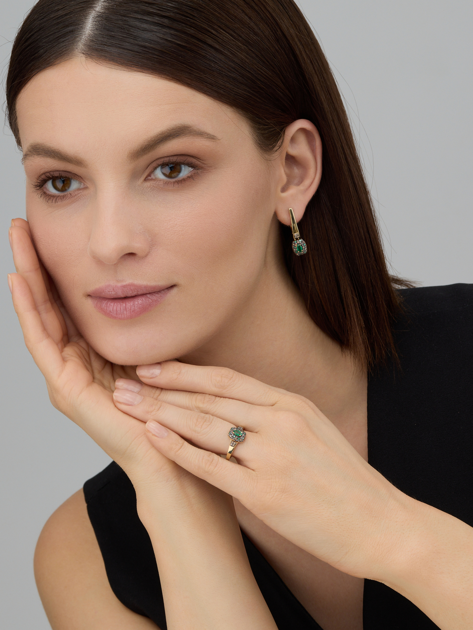 Кольцо с изумрудами и бриллиантами из золота 585 пробы