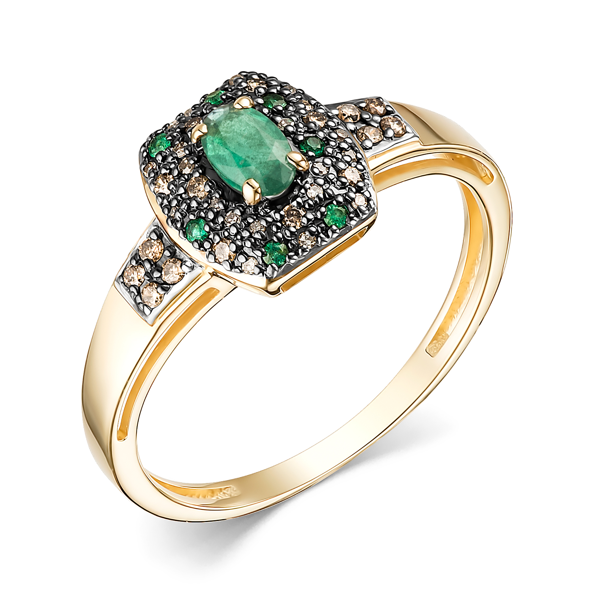 Кольцо с изумрудами и бриллиантами из золота 585 пробы арт. 15752-365