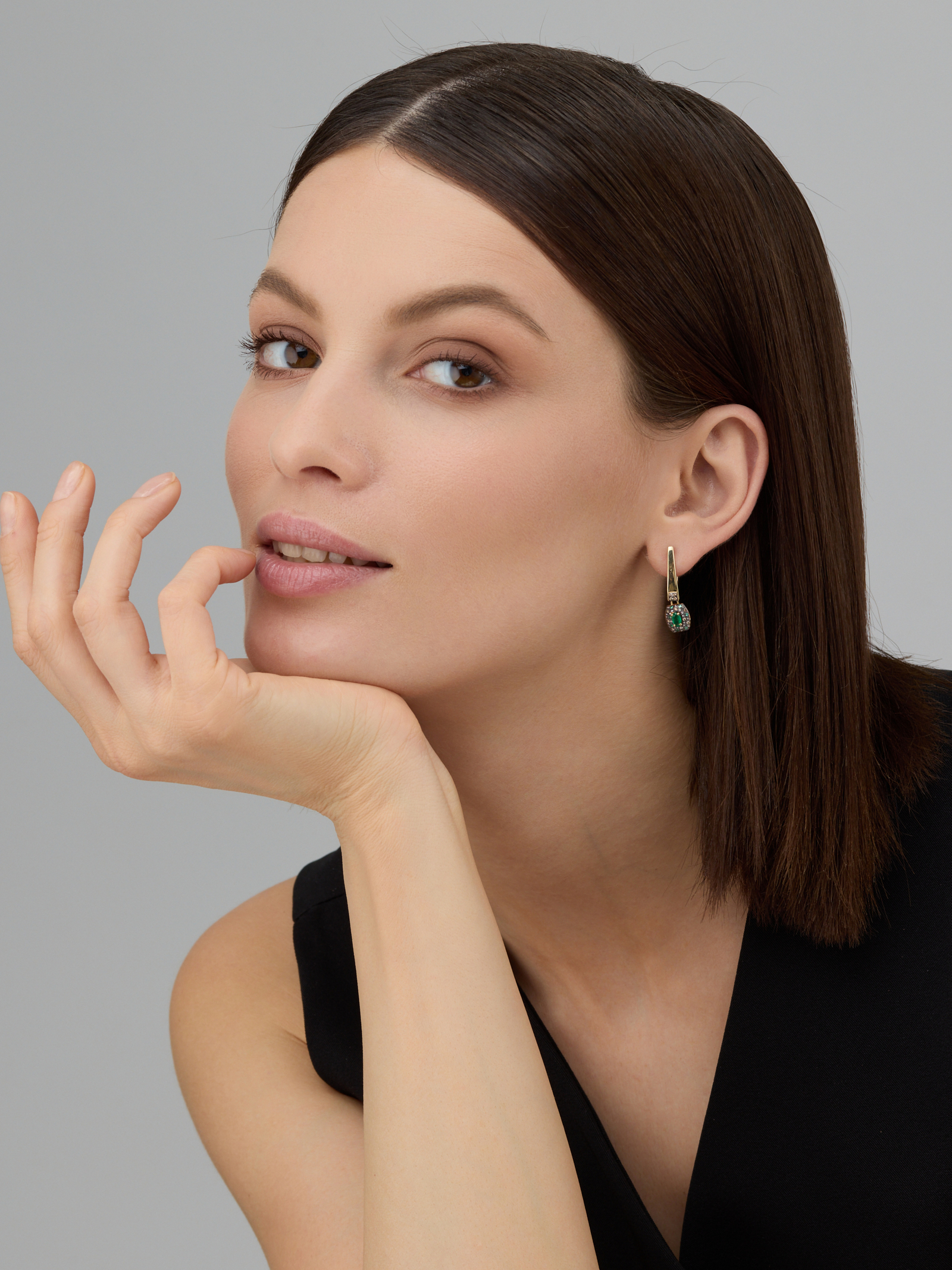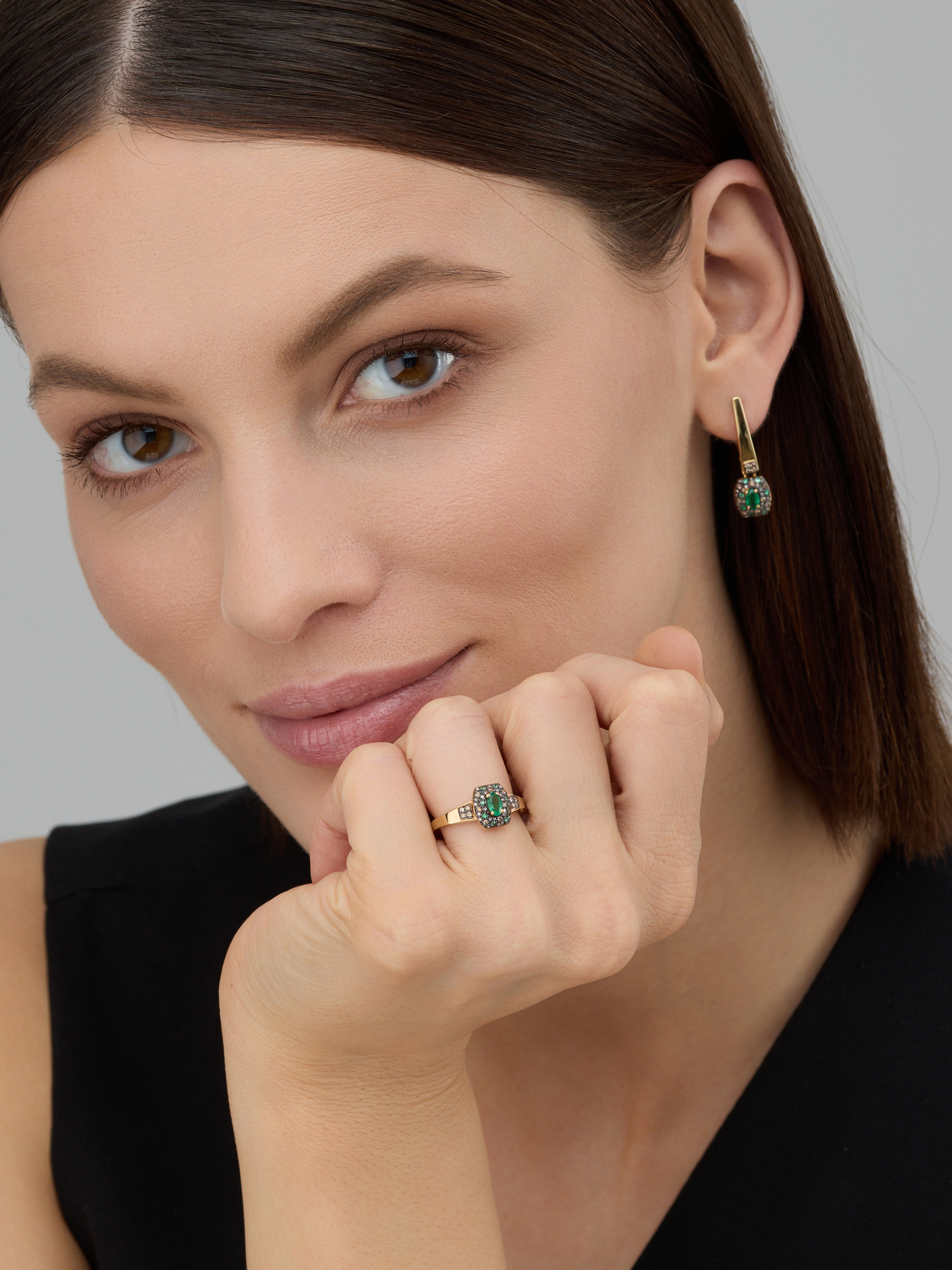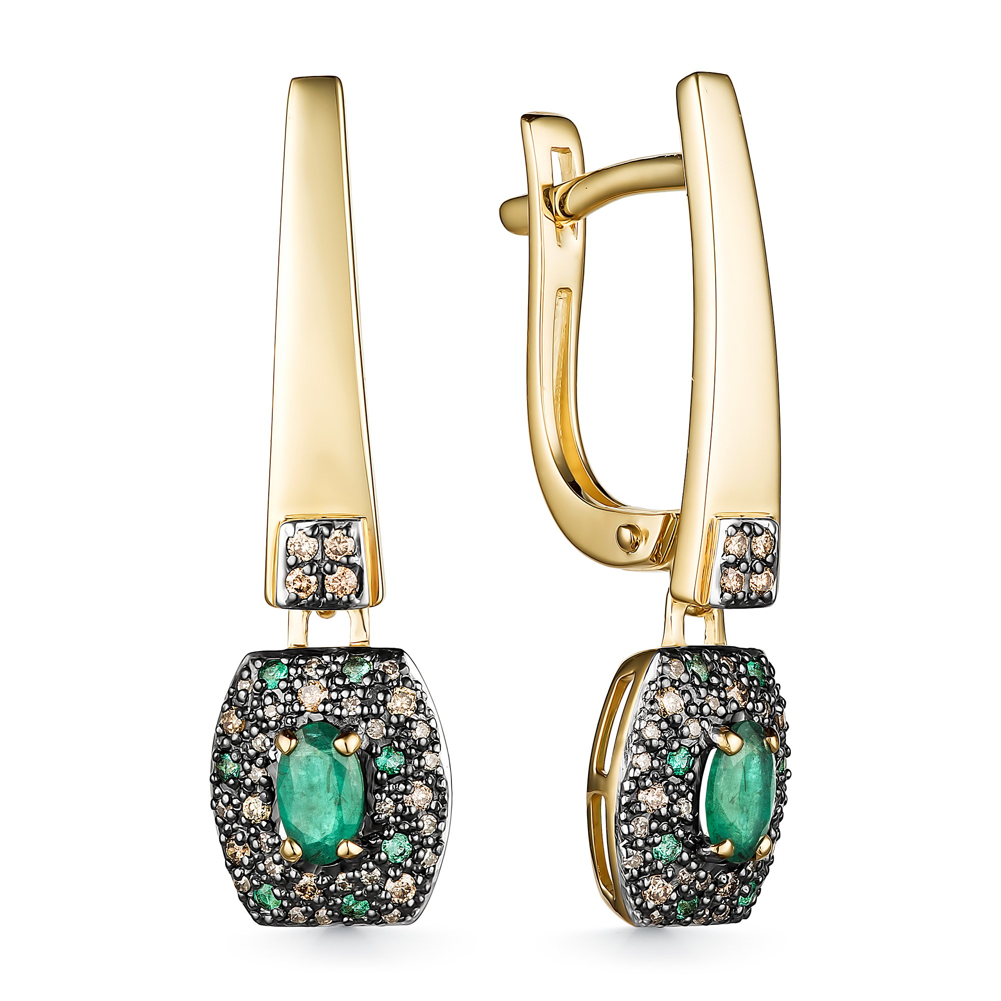 Серьги с изумрудами и бриллиантами из золота 585 пробы арт. 25752-365