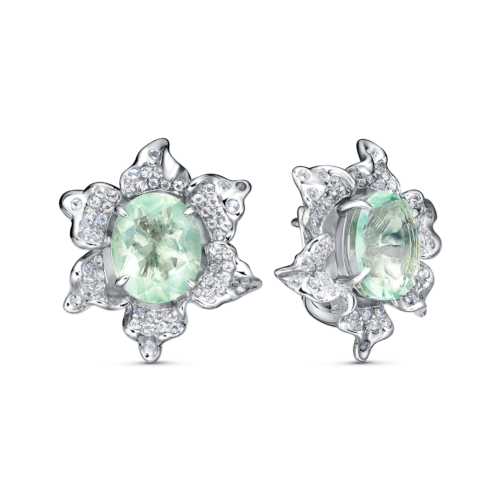 Серьги "Цветы" с флюоритом и топазами из серебра 925 пробы арт. KE1569_SR_WG