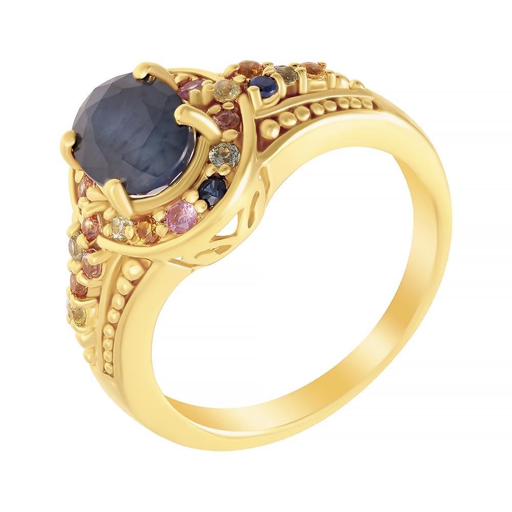 Кольцо с корундом и сапфирами из серебра 925 пробы с позолотой