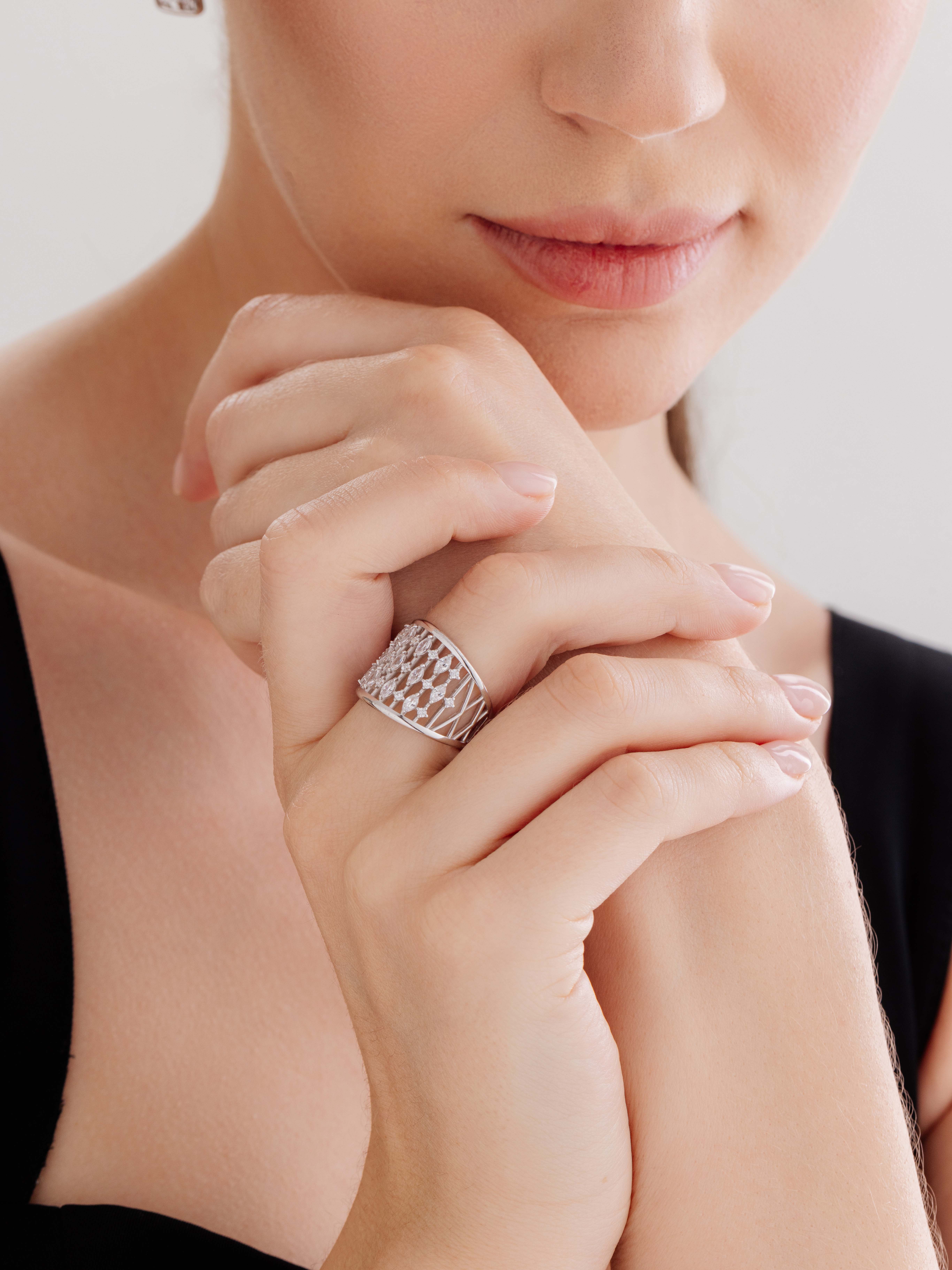 Кольцо с фианитами из серебра 925 пробы