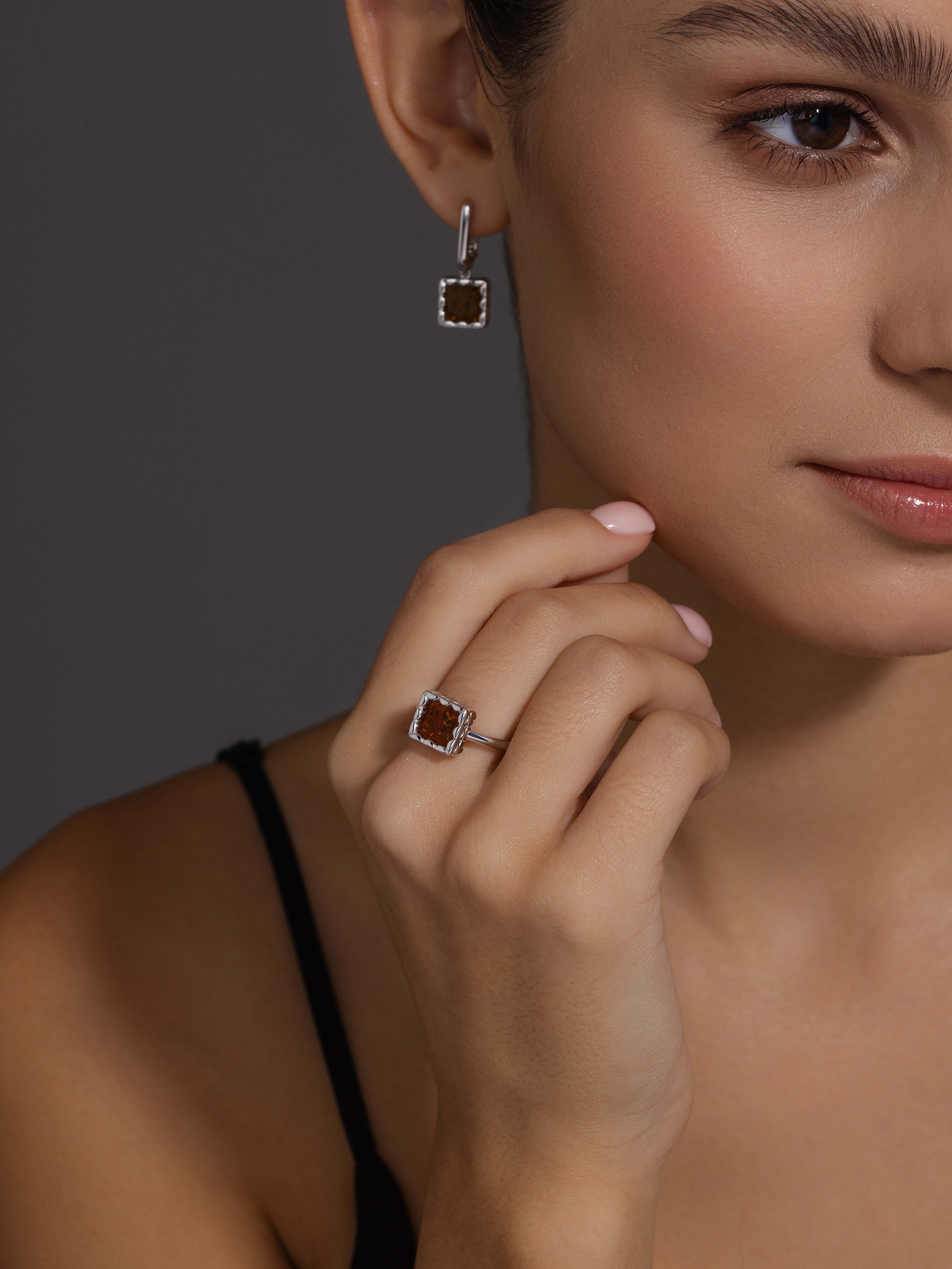 Кольцо с янтарем из серебра 925 пробы
