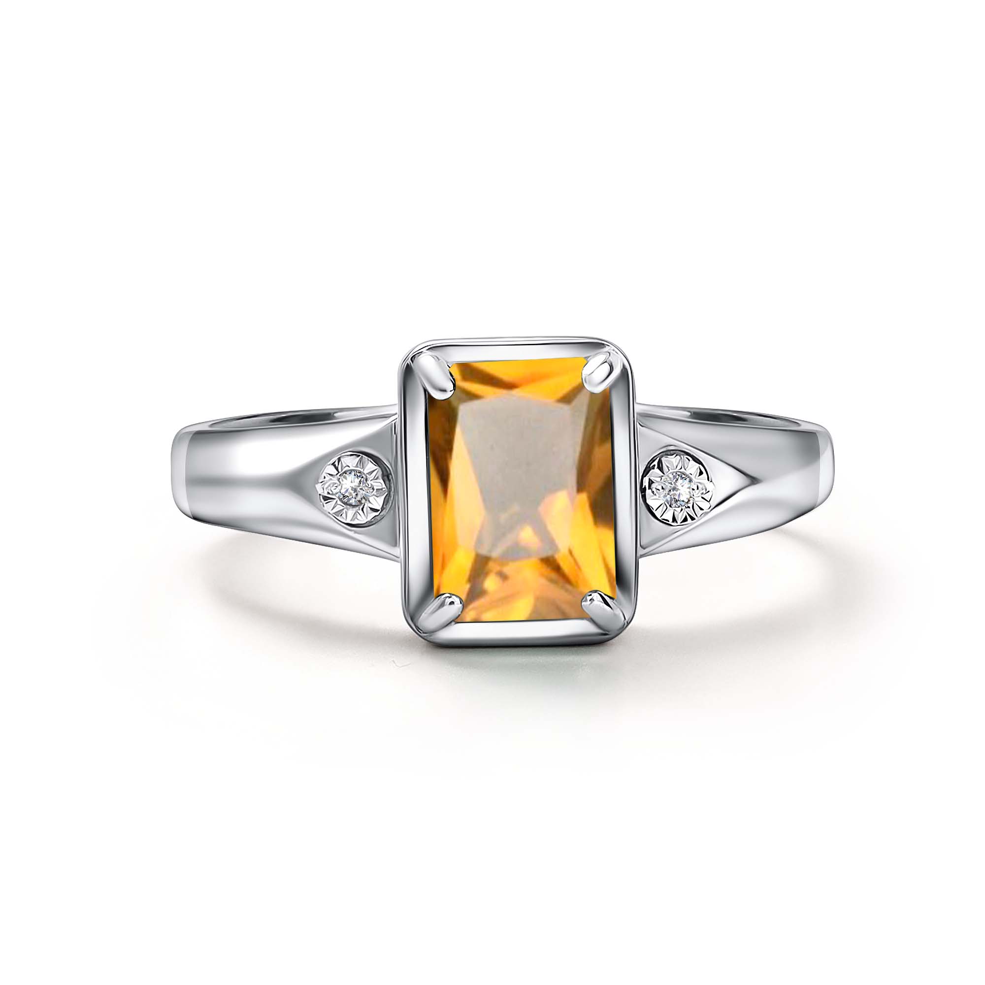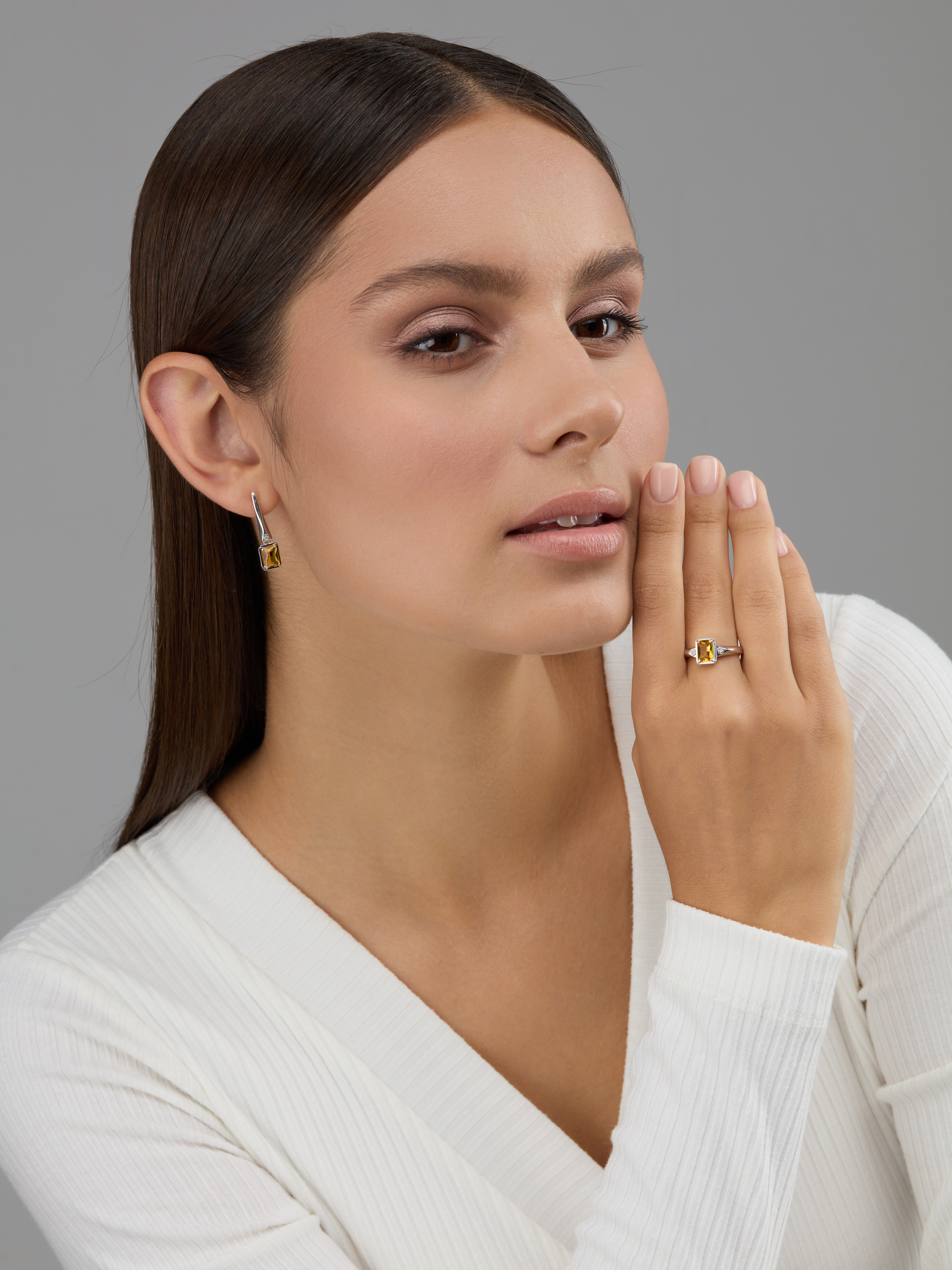Кольцо с цитрином и бриллиантами из серебра 925 пробы