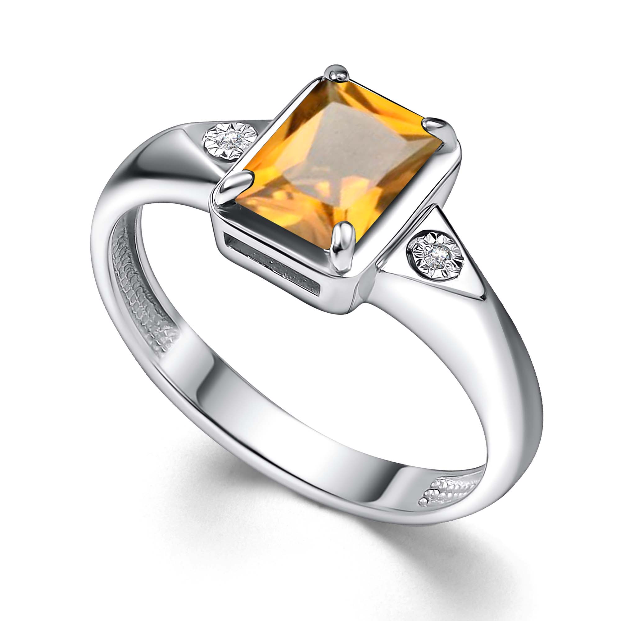 Кольцо с цитрином и бриллиантами из серебра 925 пробы арт. 01-4344/БРЦТ-00