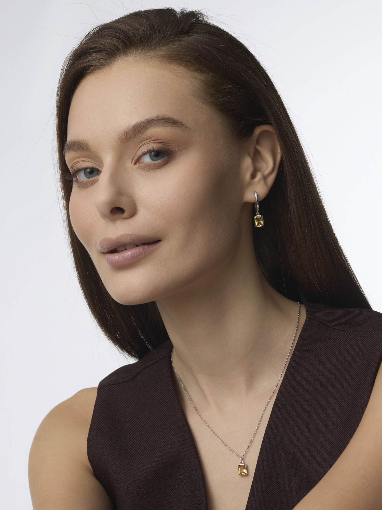 Серьги с цитрином из серебра 925 пробы арт. 02-3148/00ЦТ-00