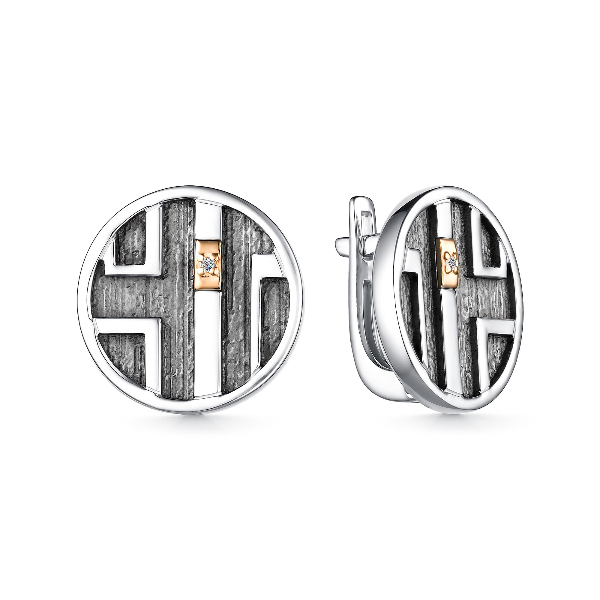 Серьги с бриллиантами и золотой вставкой из серебра 925 пробы арт. 02-3745/000Б-17
