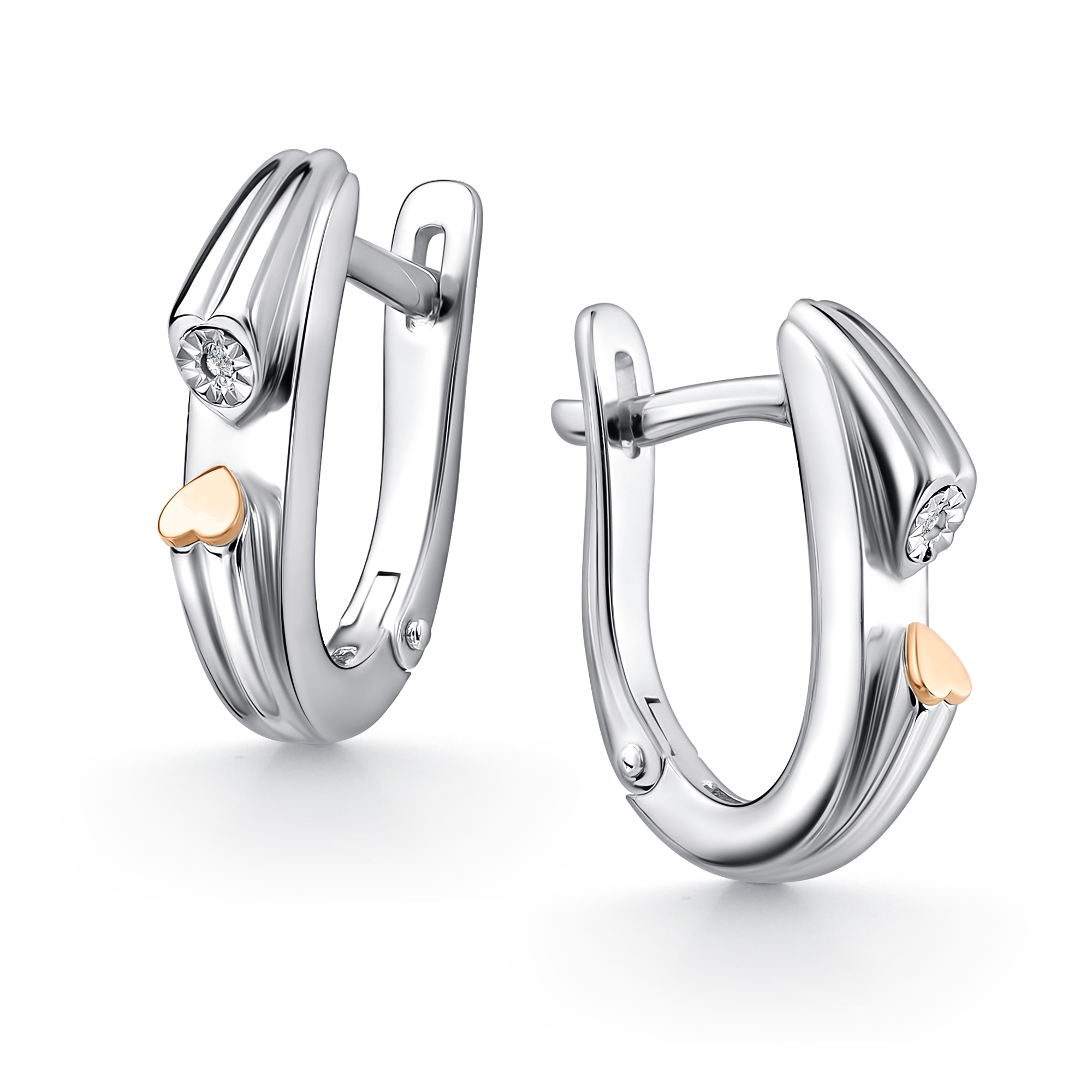 Серьги с бриллиантами и золотой вставкой из серебра 925 пробы арт. 02-4499/000Б-00
