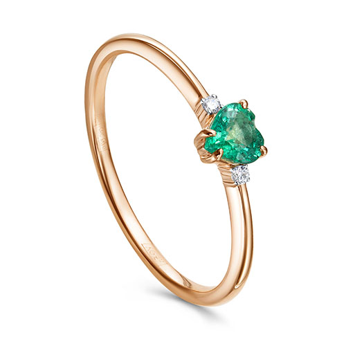 Кольцо с изумрудом и бриллиантом из золота 585 пробы