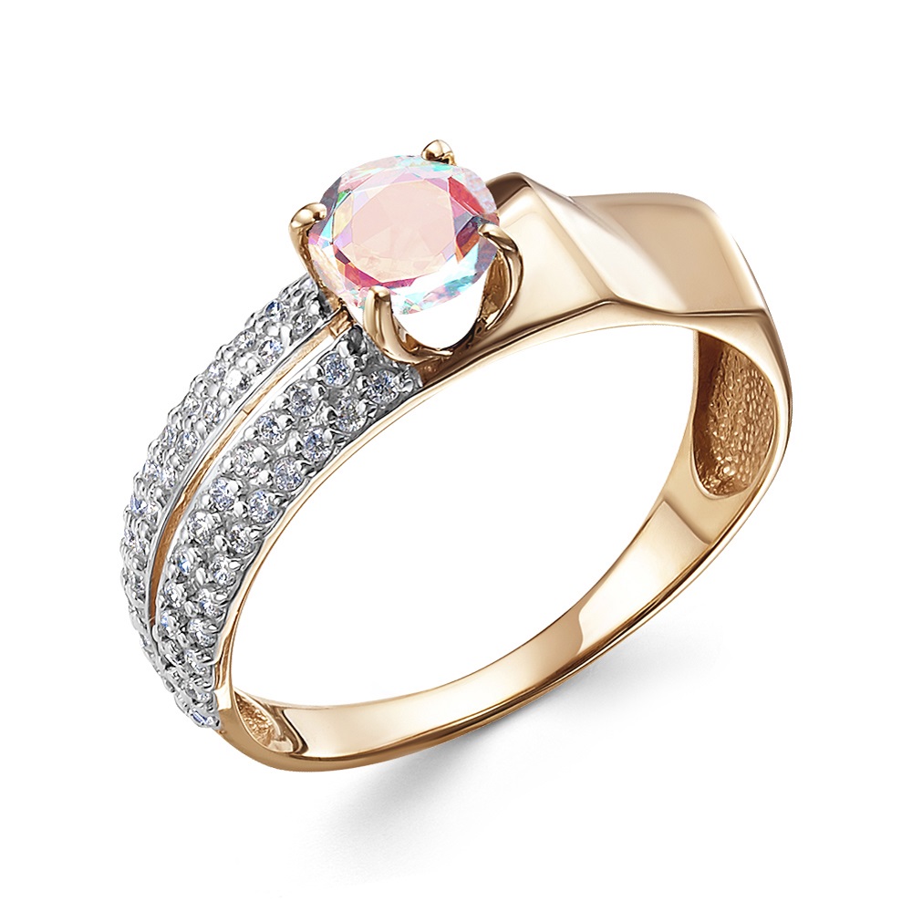 Кольцо с радужным кварцем и фианитами из золота 585 пробы арт. 1.10.11.2358.00-4221