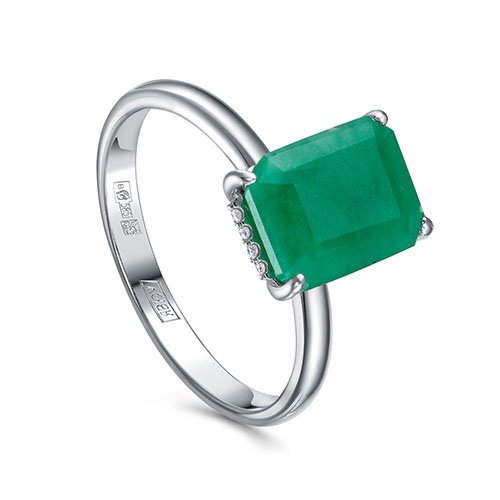 Кольцо с изумрудом и бриллиантами из золота 585 пробы