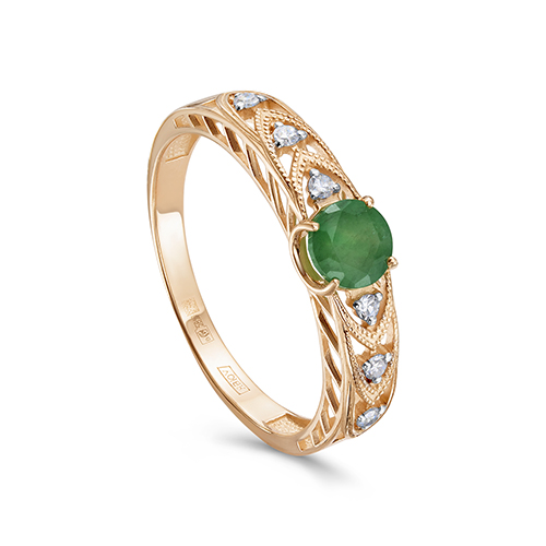 Кольцо с изумрудом и бриллиантами из золота 585 пробы