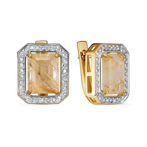 Серьги с кварцем и бриллиантами из золота 585 пробы арт. 12-21429-5100