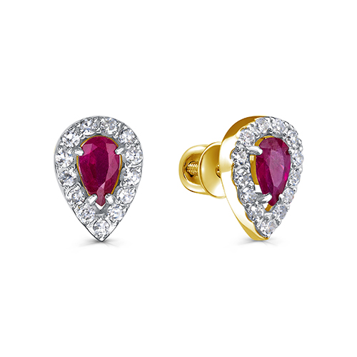 Пусеты с рубинами и бриллиантами из золота 585 пробы арт. 12-22024-3489