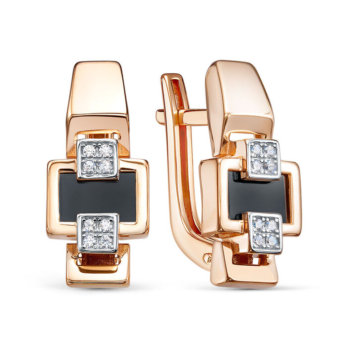 Серьги с ониксом и фианитами из золота 585 пробы арт. 121059
